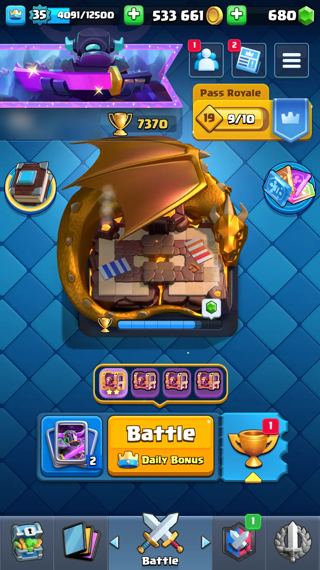 4 CHAMPIONS 🔥 7370 TROPHIES 🔥 12 KING TOWER 🚀 35 LVL 🚀 113 CARDS 🤑 1 MAX CARDS 💎 21 EMOTE ✨ 4 EVO CARDS 🤑 ANDROID & IOS 🤑 INSTANT DELIVERY
