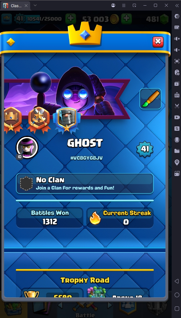 6590 TROPHY 🏆 41 LVL 💯 KT 13 👑 114 CARDS ♦️ EMOTE 27 🎭 #VC8GYG8JV ⸱ TAG ACCOUNT ♥️