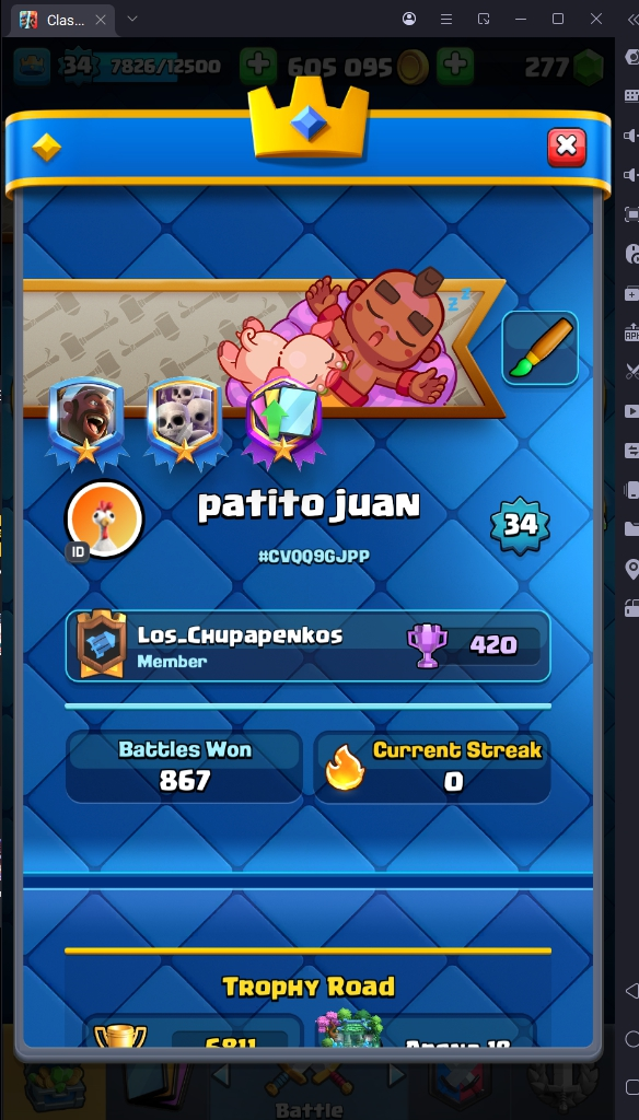 6811 TROPHY 🏆 34 LVL 💯 KT 12 👑 114 CARDS ♦️ EMOTE 22 🎭 #CVQQ9GJPP ⸱ TAG ACCOUNT ♥️