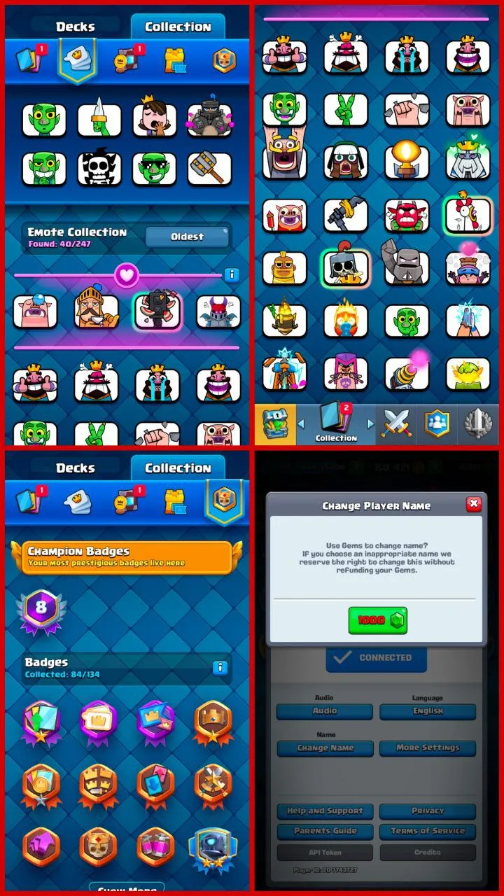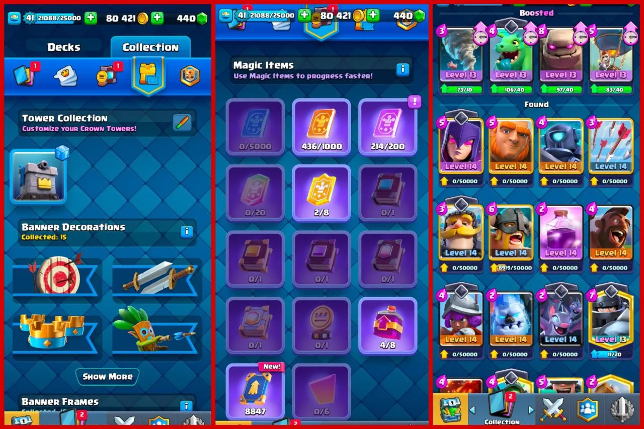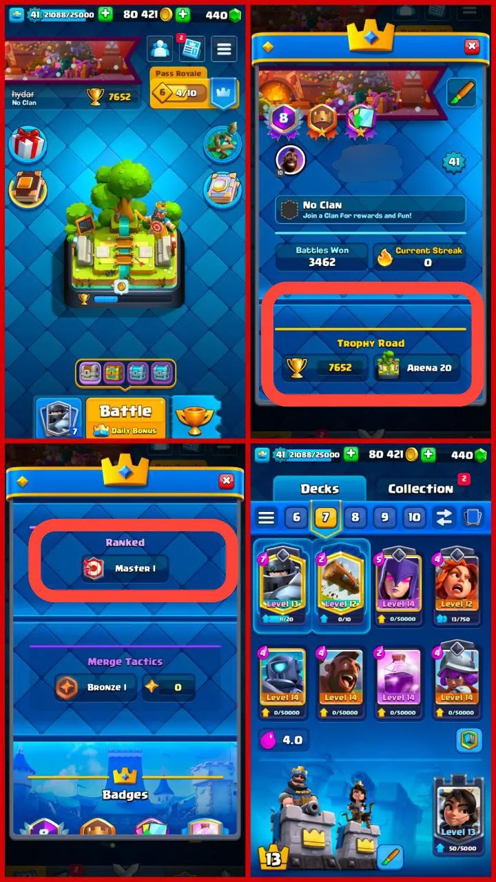 7652-TROPHIES 🏆 ARENA-20 🌟 114 CARDS / 11 MAXED 🔥 40 EMOTES 💫 KT-13 👑 41 XP 🔵 INSTANT DELIVERY 🚚