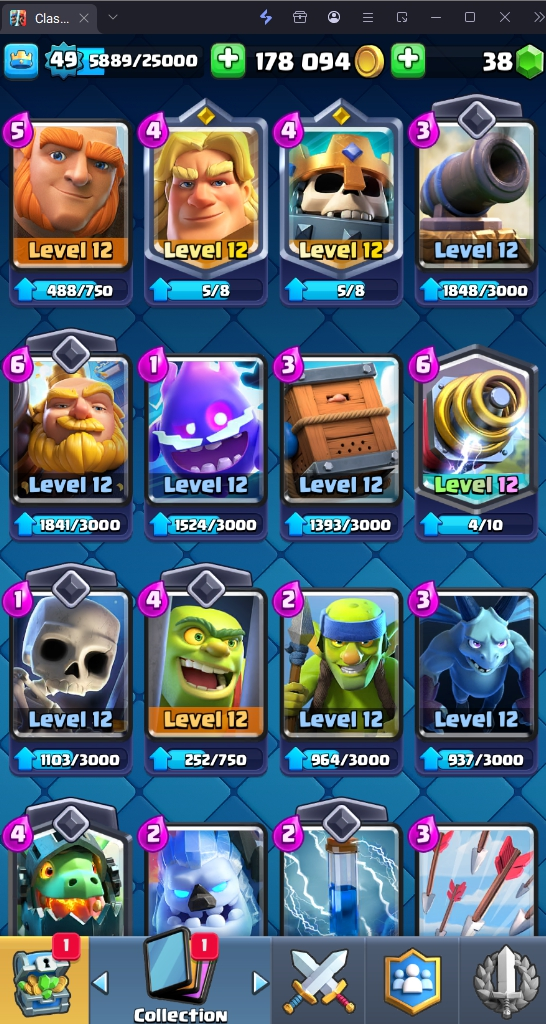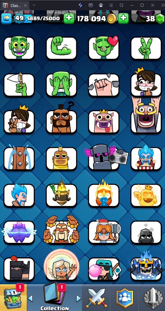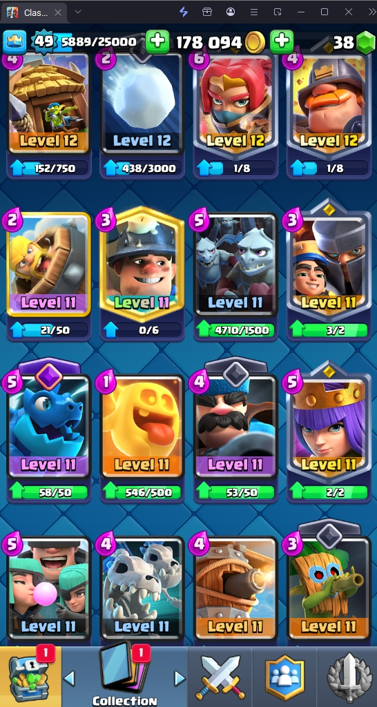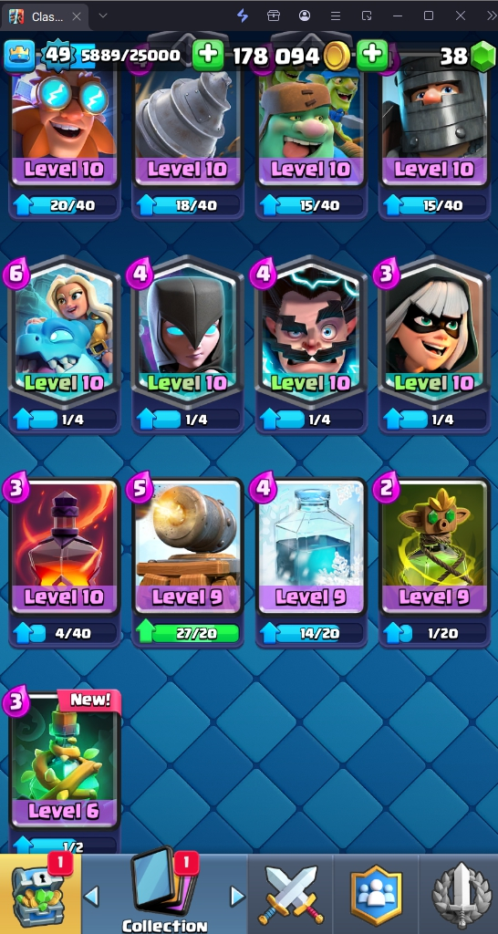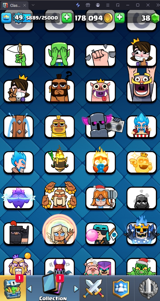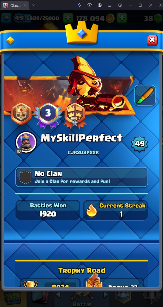 8924 TROPHY 🏆 49 LVL 💯 KT 14 👑 121 CARDS ♦️ 8 MAX CARDS 👑 3 ELITE CARDS 🔮 6 EVO 💯 EMOTE 56 🎭 #JR2U8P22R ⸱ TAG ACCOUNT ♥️