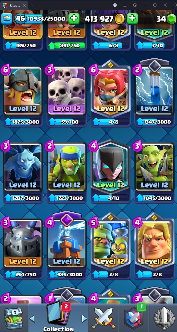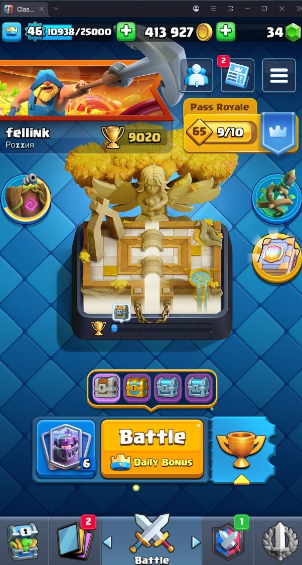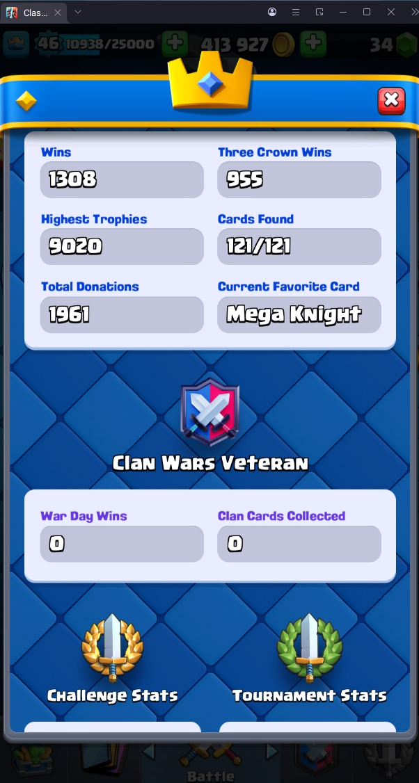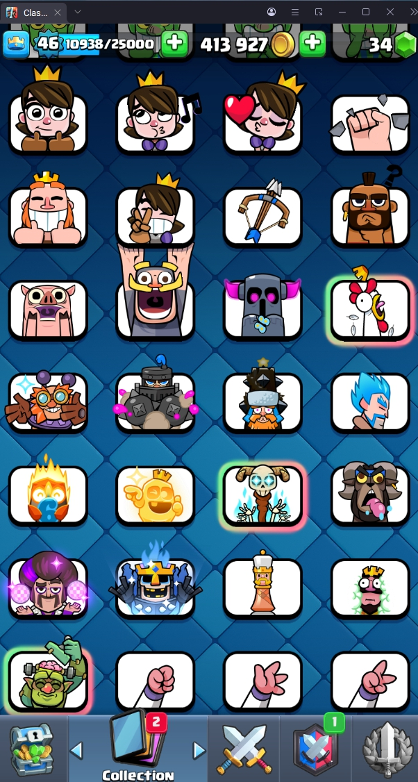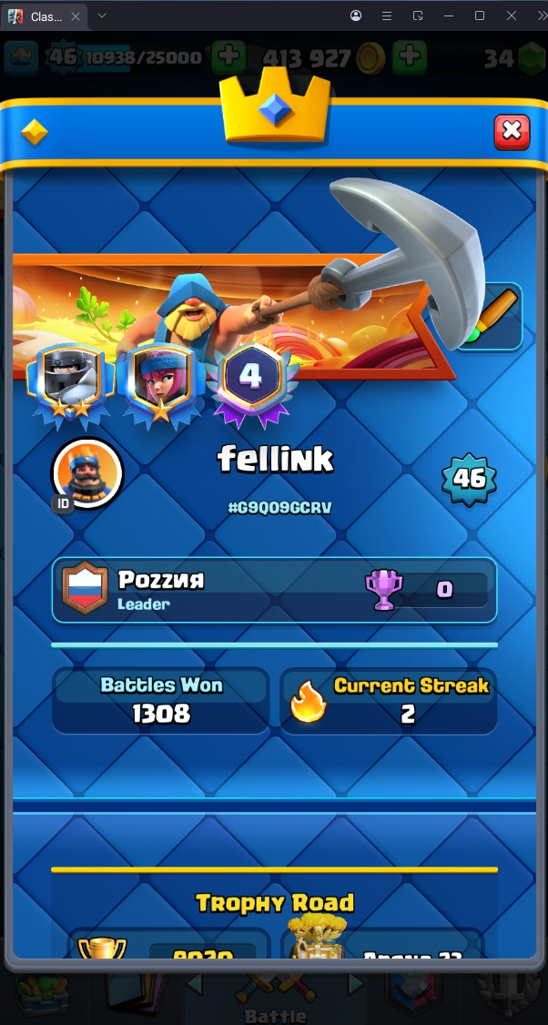 9020 TROPHY 🏆 46 LVL 💯 KT 14 👑 121 CARDS ♦️ 3 MAX CARDS 👑 3 ELITE CARDS  🔮 9 EVO 💯 EMOTE 58 🎭 #G9Q09GCRV ⸱ TAG ACCOUNT ♥️