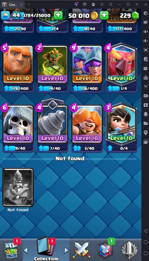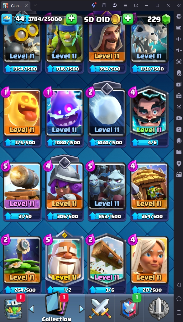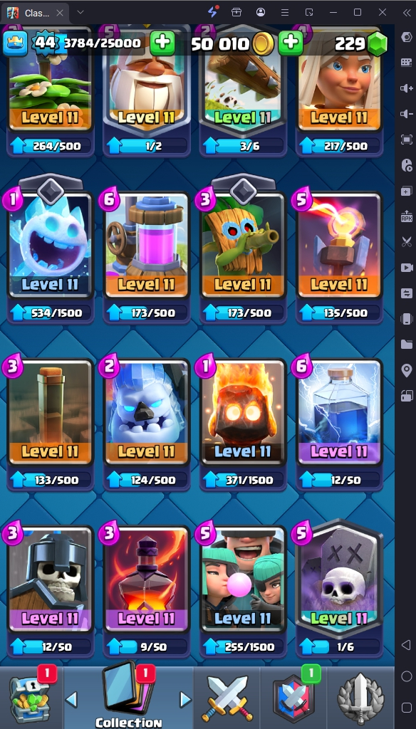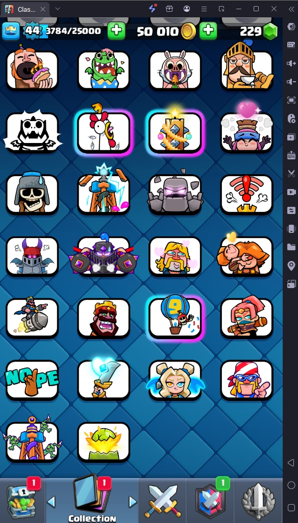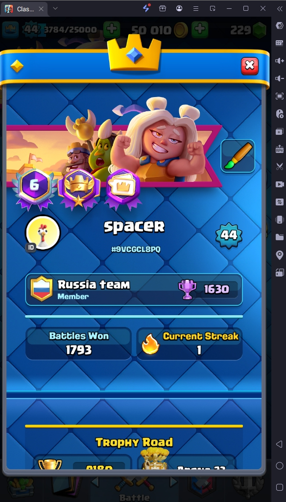 9180 TROPHY 🏆 44 LVL 💯 KT 14 👑 120 CARDS ♦️ 3 MAX CARDS 👑 1 ELITE CARDS 🔮 9 EVO 💯 EMOTE 54 🎭 #9VCGCL8PQ ⸱ TAG ACCOUNT ♥️