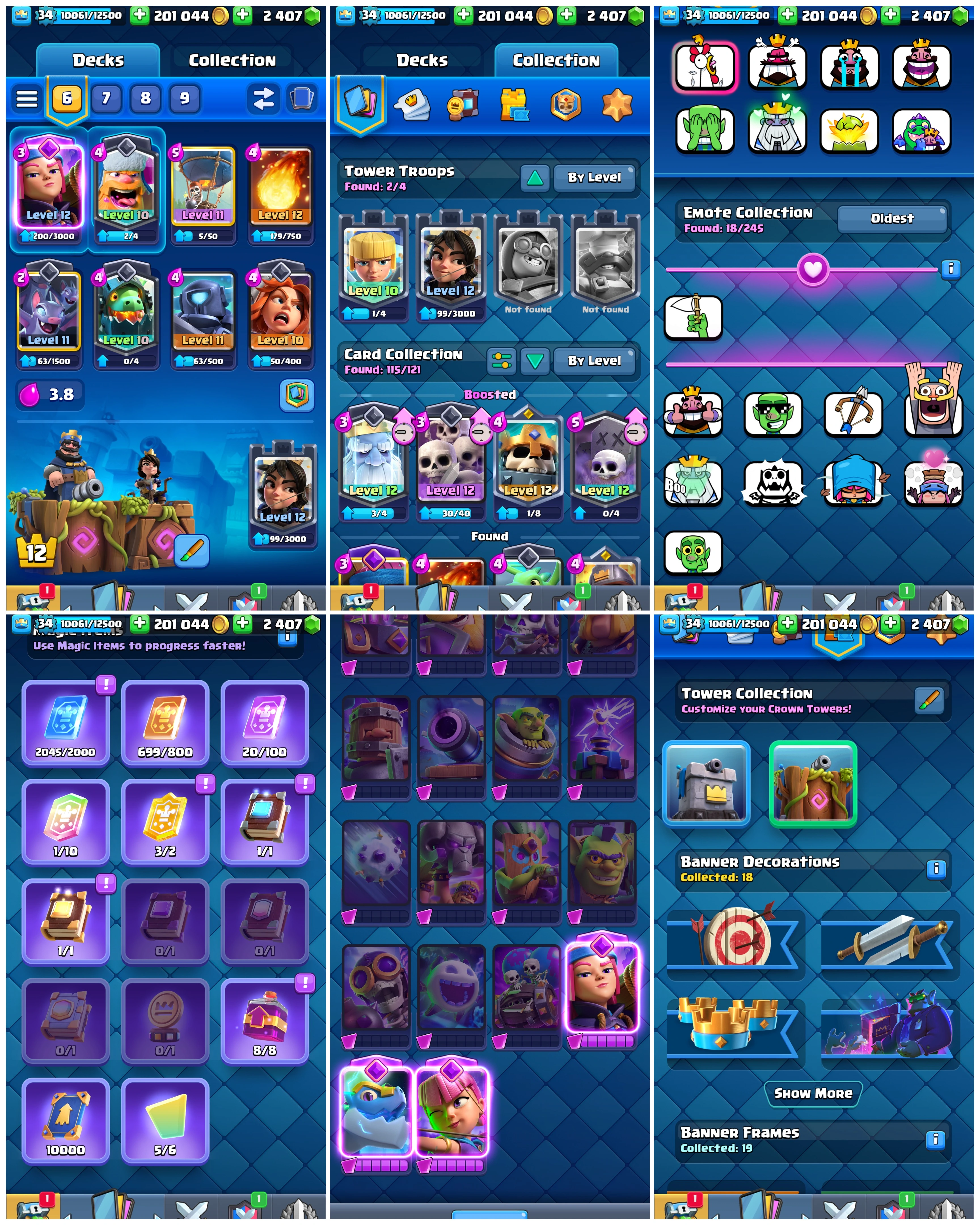 ⚡️ Buy 1 Get 1 Deal! Free TH11 COC with this CR account 🌟 6212 Trophies 🏆| Level 34 🔥 | King Tower 12 👑 | Arena 17 ⚔️ | Emote 18 😎 Cards 115 🚀 Instant Delivery 🚀 Lifetime Access ✅ | #P732