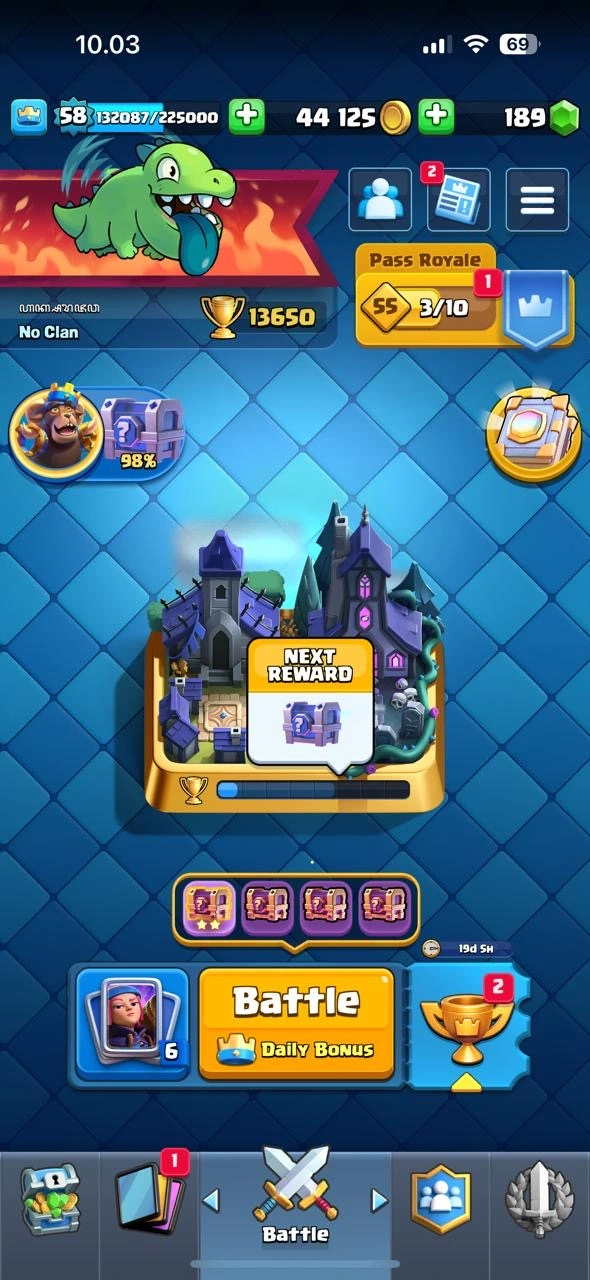 CR XP 58🔥KT15🔥19 Elite🔥54 Max Card🔥14 Evo🔥100 Emotes🔥6 Skins Tower🔥Acces Full🔥Cheapest and Safe Account