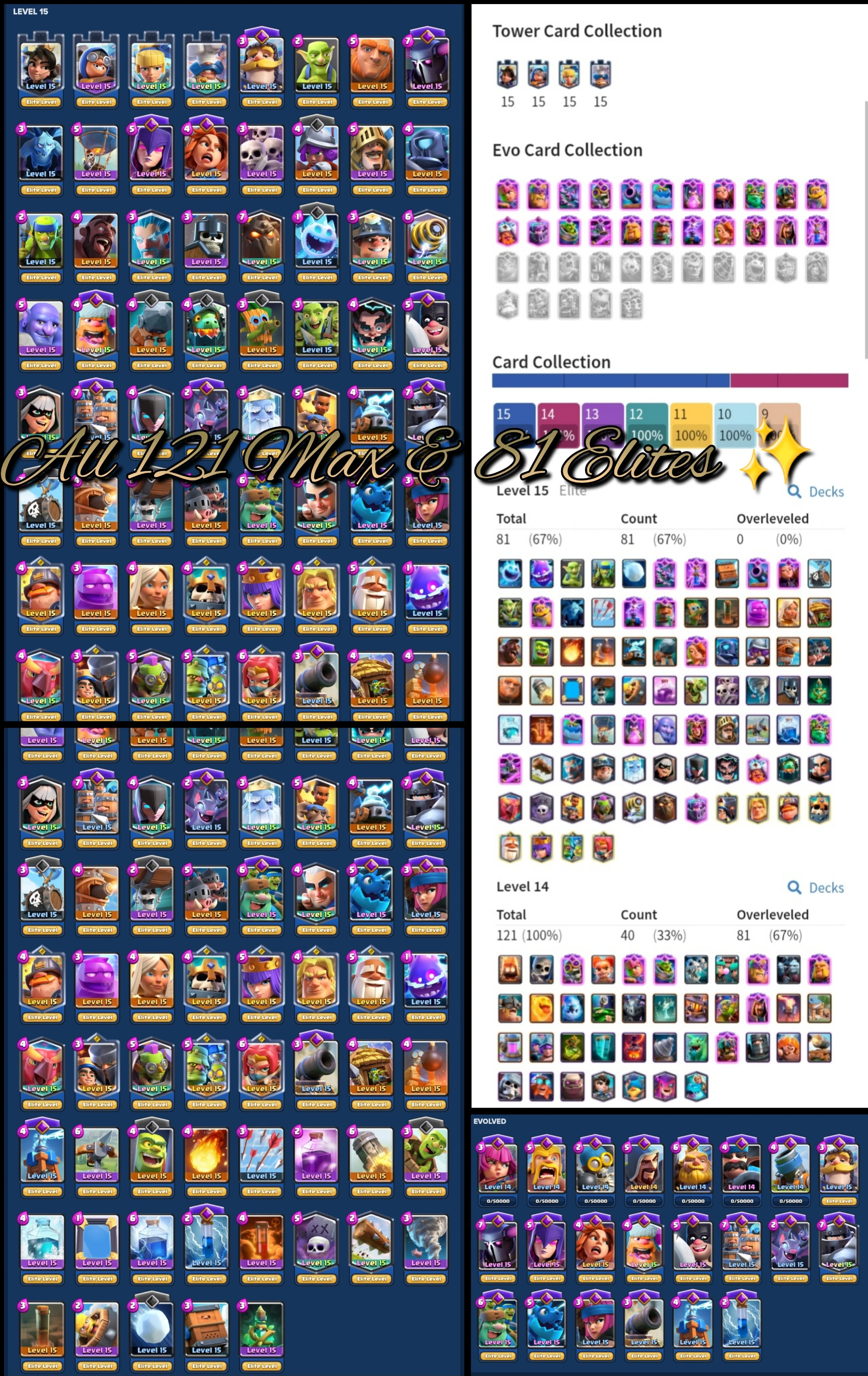 🦄✨{ELITE BOSS XP69} ALL 121 MAX CARD ⸱ 81 ELITES [RARE] 15K+ TROPHY ⸱ 200 EMOTES [GHOST CRY-PEKKA BALLON ⸱ PUNCHING FISH] ⸱ FISH TANK TOWER-9 YEAR OLD BADGE-KT15 ⸱ RANKED UC ⸱ 4.8M GOLD- RENAME AVAILABLE- LIFETIME WARRANTY- INSTANT DELIVERY 🚚