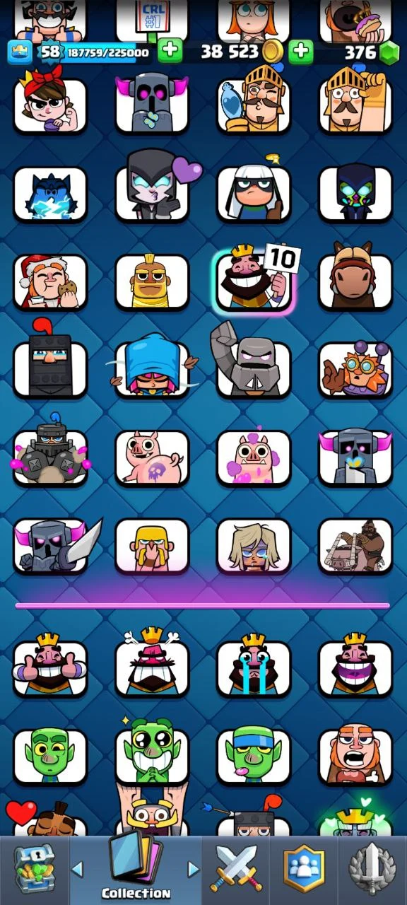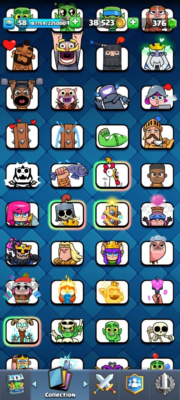 💎 FULLY STACKED WITH RARE EMOTES 👑 GRASS CHEWING RAM 😈 YEAR 2020 SPECTACLE BOMBER 🏹 CANON GIANT 🤯 7x TOWER SKINS 🌟 EMPEROR KING 🏅 GOBLIN EMOTES 💰 GOBLIN EMOTES 👑 MUSKETEER EMOTES ✨️ CANON GIANT ☠️