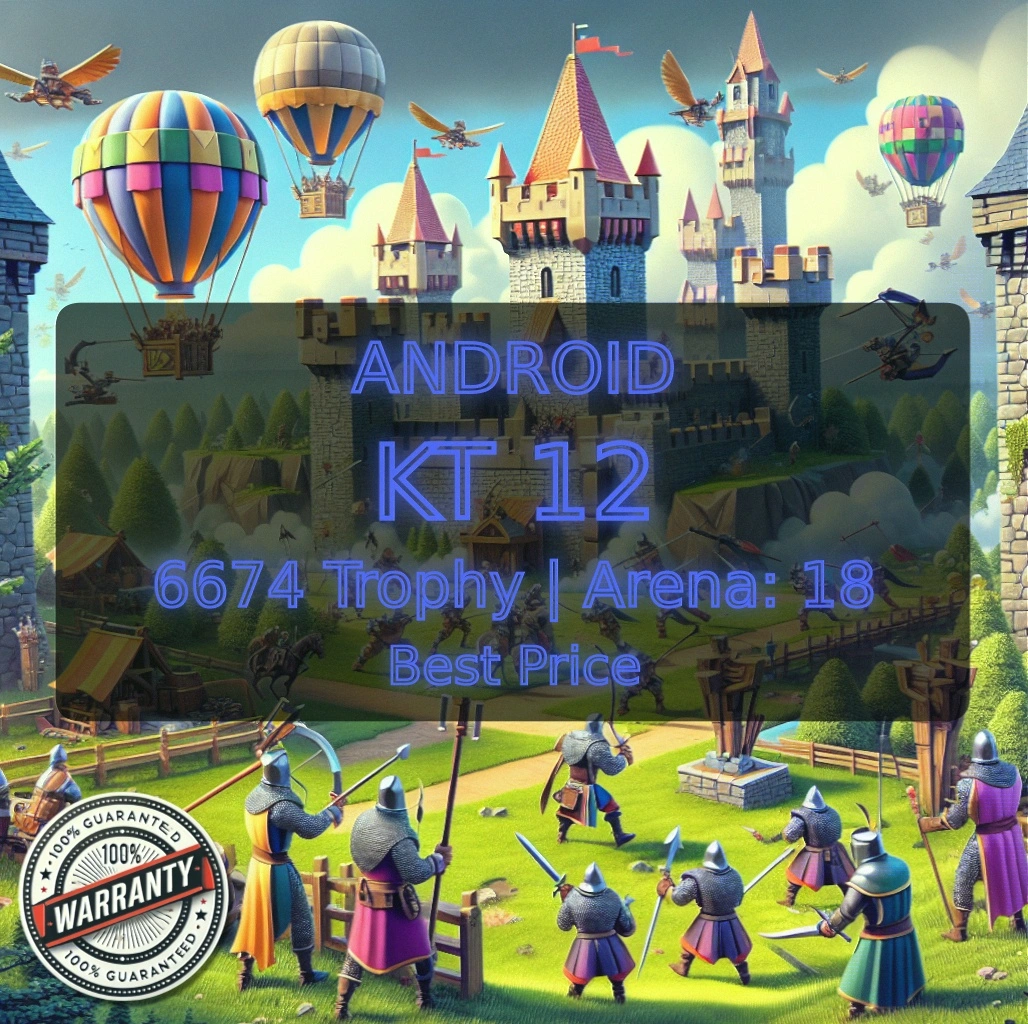 KT 12 LEVEL 34+Trophies:6674+106 Cards+4 Cards (14LVL)+2 Tower Skins+19 Emotes+284K Gold+1005 Gems+IOS/ANDROID #ID-164177