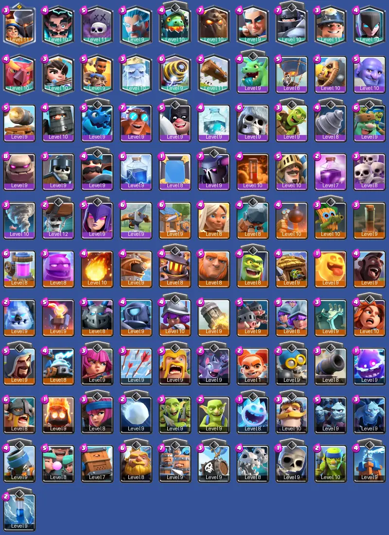 [KT11] | Level 30 | 4830 Trophies | Arena 14 | 101/125 Cards | 512 Wins | BS Lv.156 | CoC TH10 | 1 Champions | 15 Legendary | 28 Epic | S4G