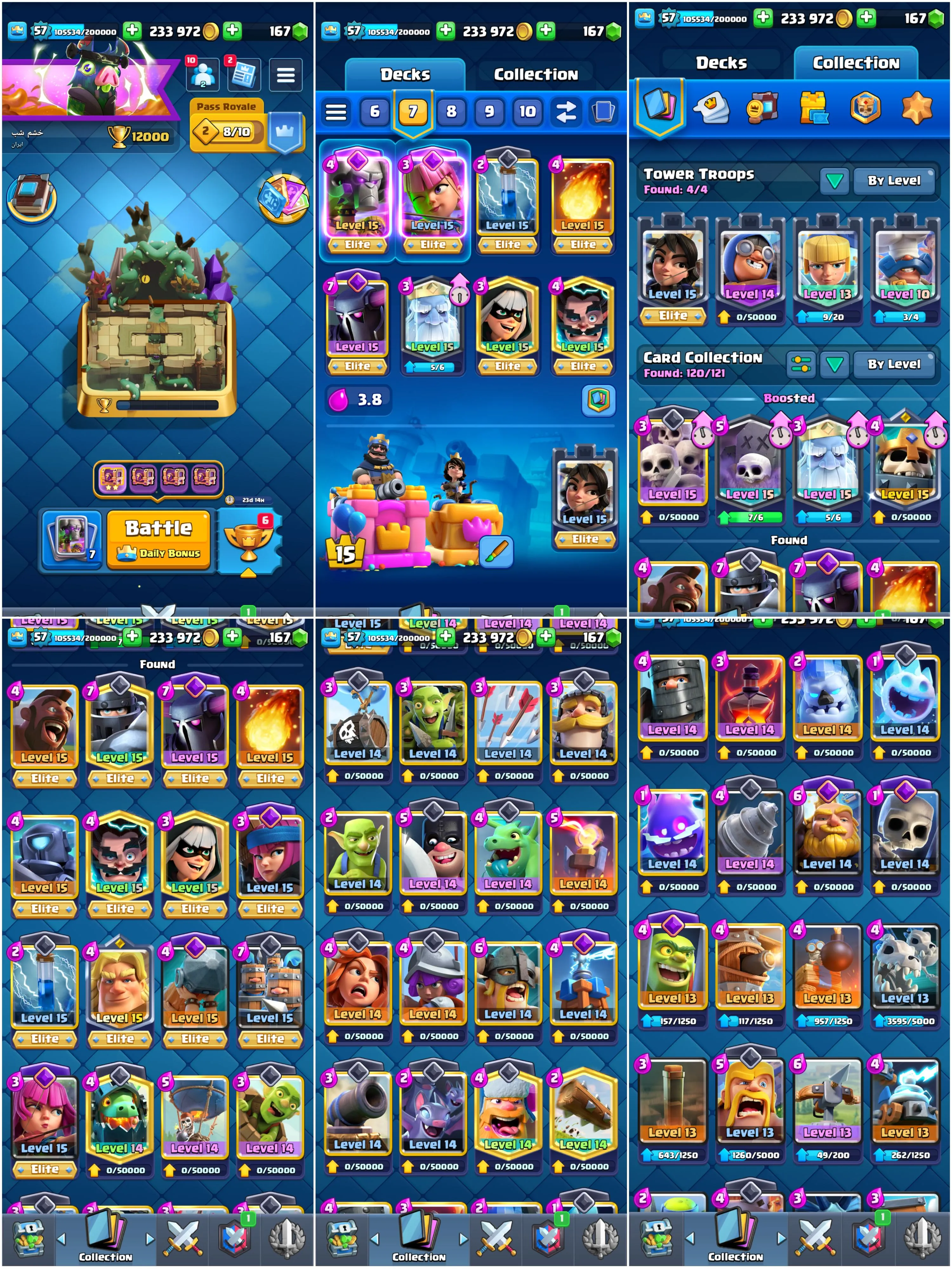 Level 57 + KT 15 ✨ 12000 Trophies 🏆 4 Years Played Badge 🏅 42 Max Cards {13 Elites} 🔢 + 12 Evos 🔥 84 Stacked Emotes 🎭 Instant Delivery