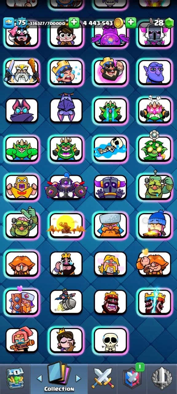 ✨️ RAREST 💎 75 XP 😈 71 ELITE CARDS 🎯 ROYALE GHOST WITH GEM 🤯 16 EVOLUTION 🌟 LAUGHING HOG 🏅 ULTIMATE CHAMPION RECORD 🔥 EMPEROR KING 🏆 YEAR 2020 SPECTACLE BOMBER💰 GOBLIN EMOTES 🎈 MUSKETEER EMOTE ✨️