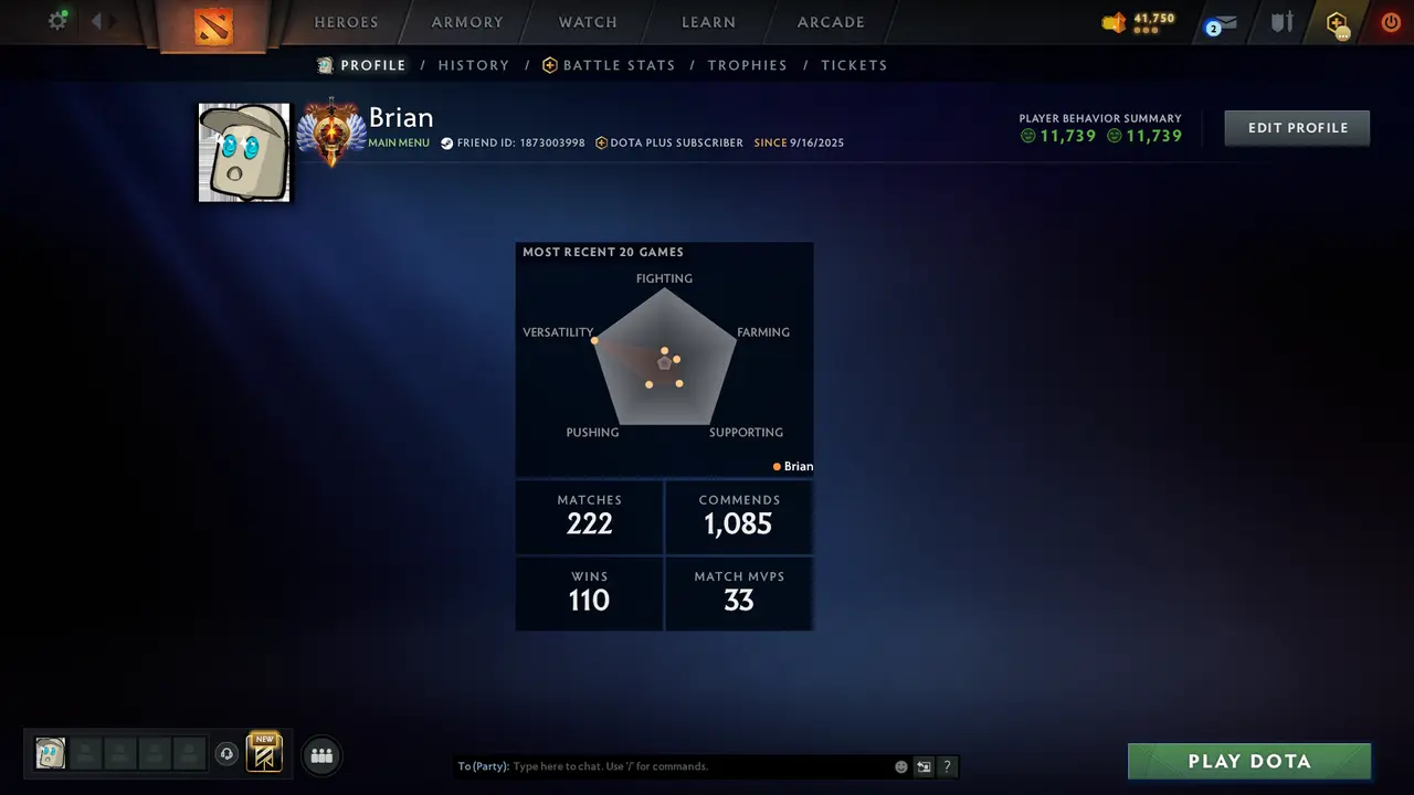 #BB1764 Immortal 6215 MMR+62 LVL TROPHY+222 matches+11739 behavior