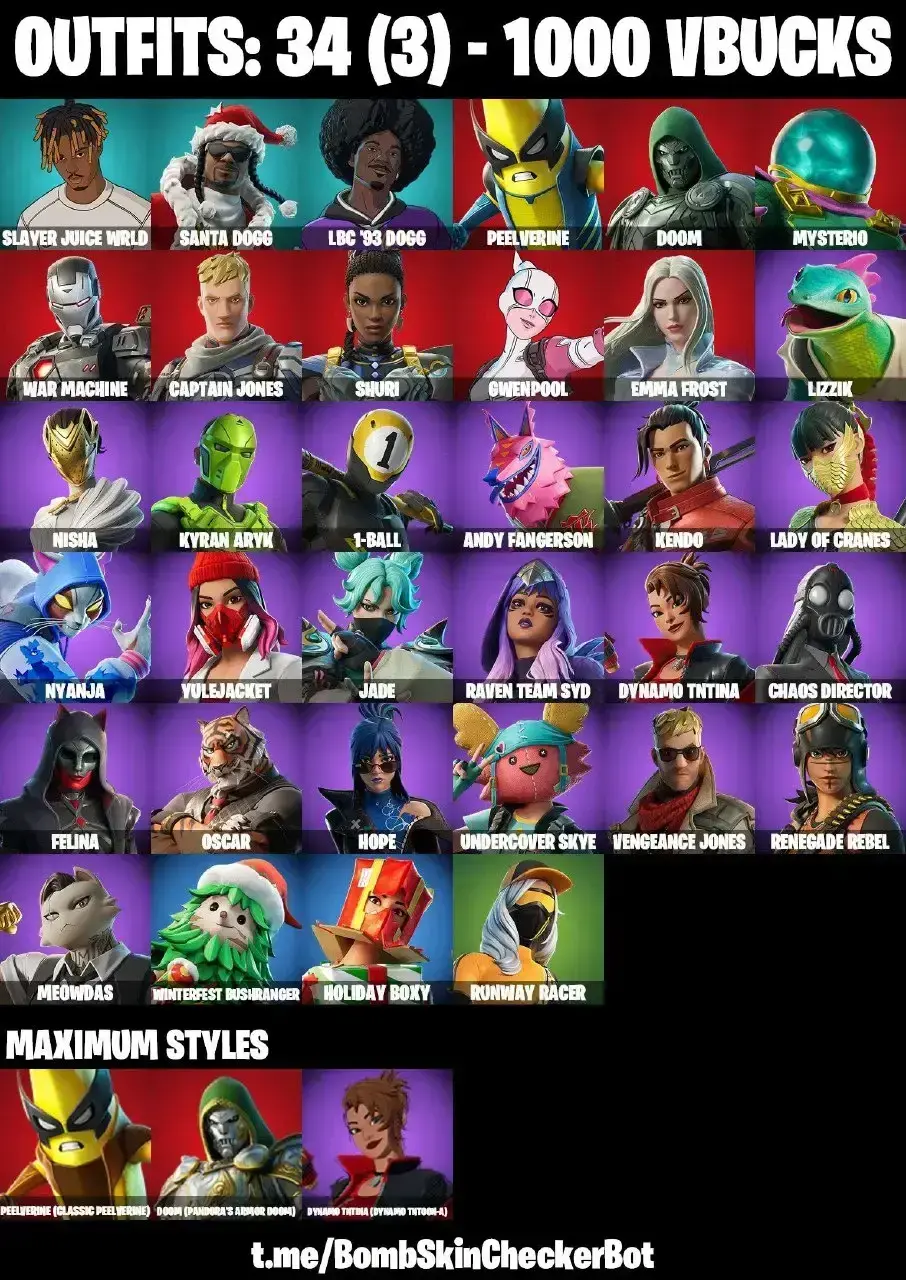 34 SKINS | LADY OF CRANES | CHAOS DIRECTOR | HOPE | PEELVERINE MAX | NISHA | OSCAR | JADE | RAVEN TEAM SYD | CAN PLAY ON PC,NINTENDO,MOBILE | 1000 VBUCKS | FULL EMAIL ACCESS