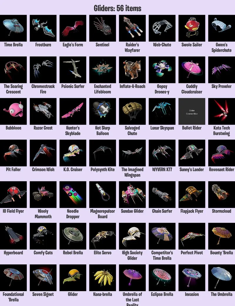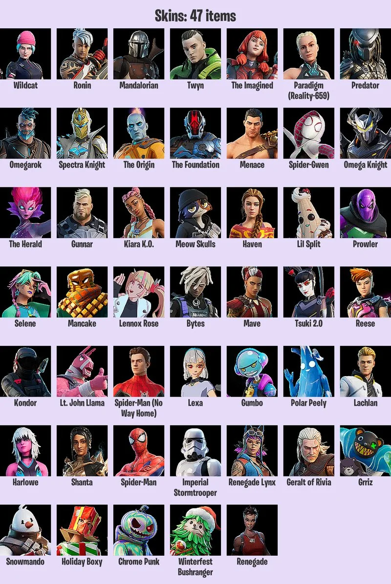 47 Skins|Wildcat|Ronin|Mandalorian|Twyn|The Imagined|Paradigm (Reality-659)|Predator|Omegarok|Spectra Knight|The Origin|The Foundation