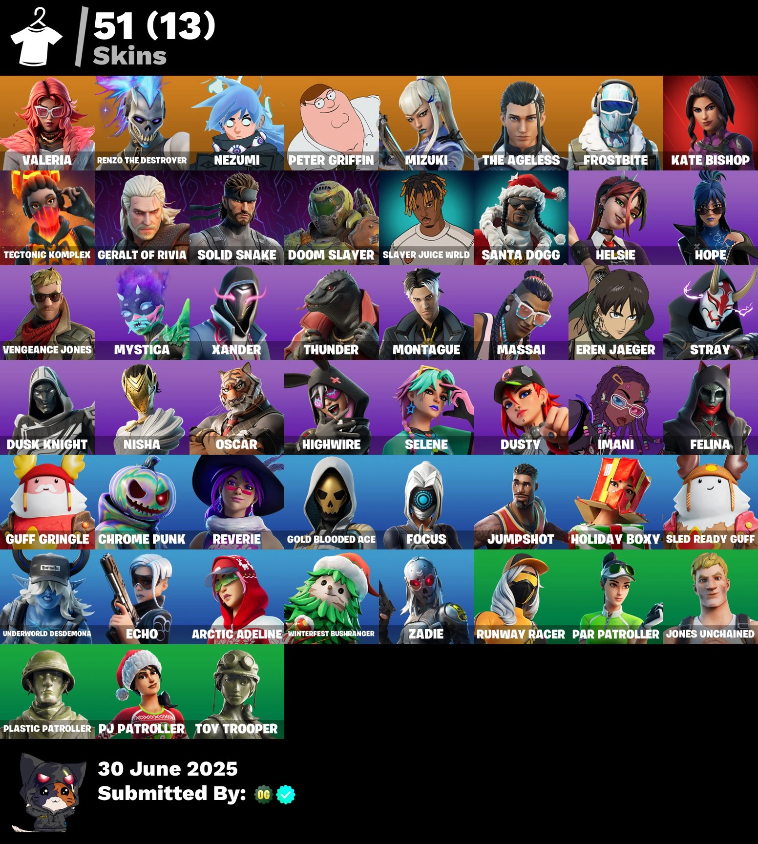 💜51 SKINS💜PSN XBOX NINTENDO PC💜STW💜EMAIL💜750-vBUCKS XANDER📌THUNDER✅MONTAGUE📌DOOM SLAYER✅FROSTBITE📌KATE BISHOP✅ZADIE FOCUS JUMPSHOT ECHO📌DUSK KNIGHT✅VALERIA