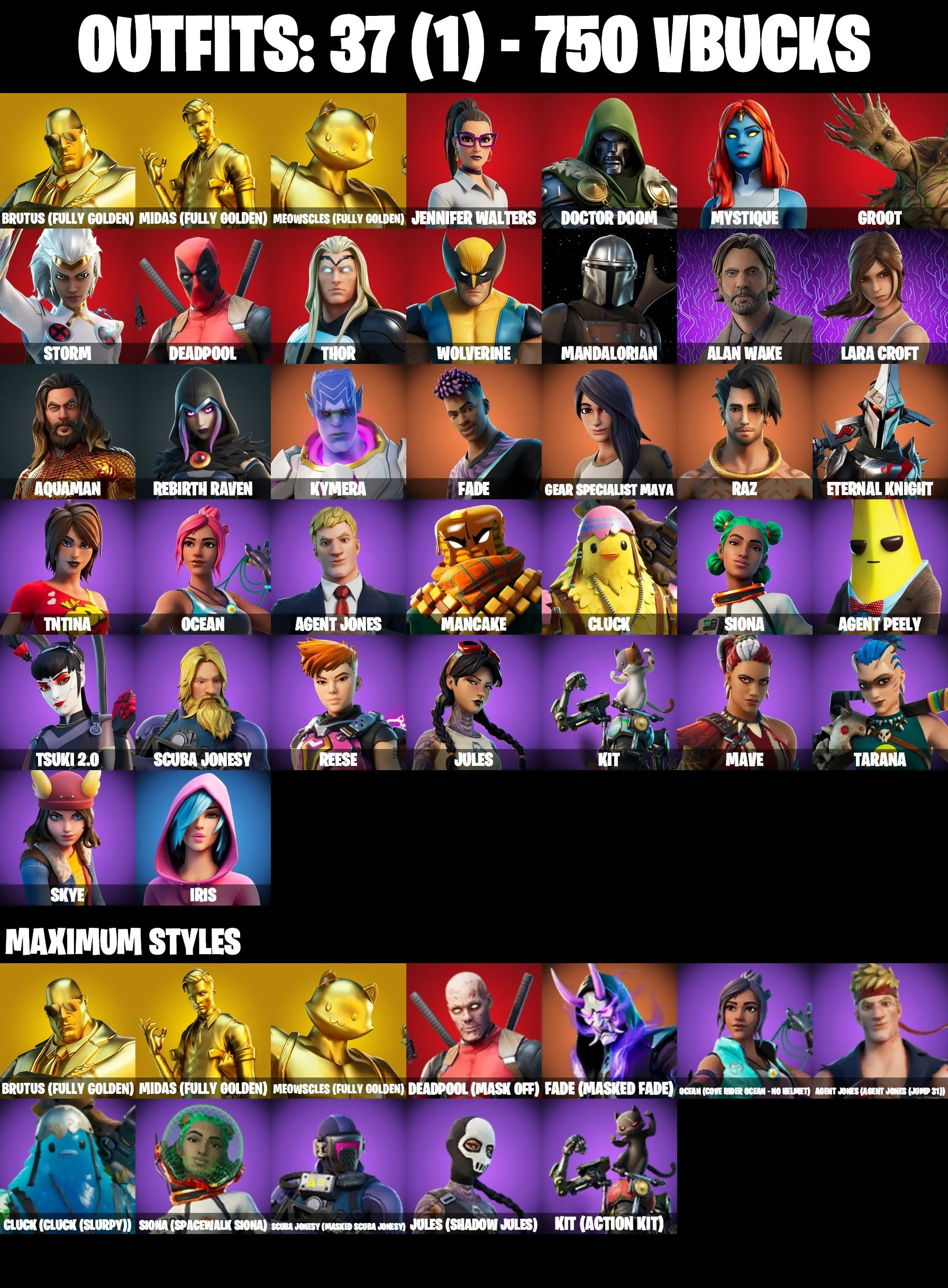 ALL PLATFORMS ⚡ 37 SKINS 💎 RAGE 💜 GOLD MIDAS 💜 LARA CROFT 💜 JULES 💜 JENNIFER WALTERS 💜 MANDALORIAN 💜 ALAN WAKE 💜 SIONA 💜 OCEAN ⚡ FULL ACCESS
