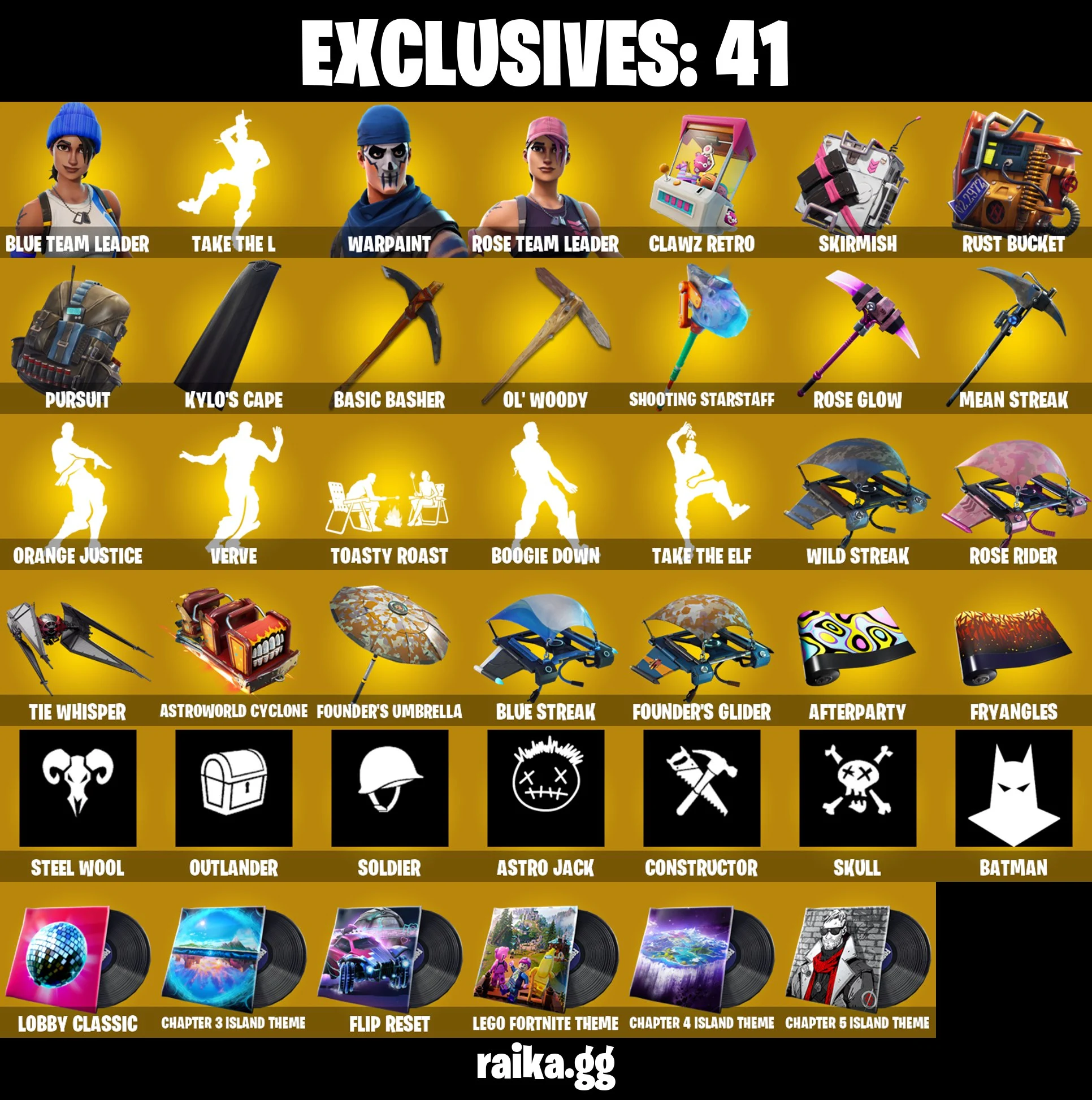 ⭐ Inactive for 4 years | Mail changenable | 72 skins | OG STW | parent email (no code) | Blue Team Leader | Take the L | Clawz Retro | Skirmish | Rust Bucket | Pursuit | Basic Basher | Ol' Woody | Shooting Starstaff | Rose Glow | 400 VB