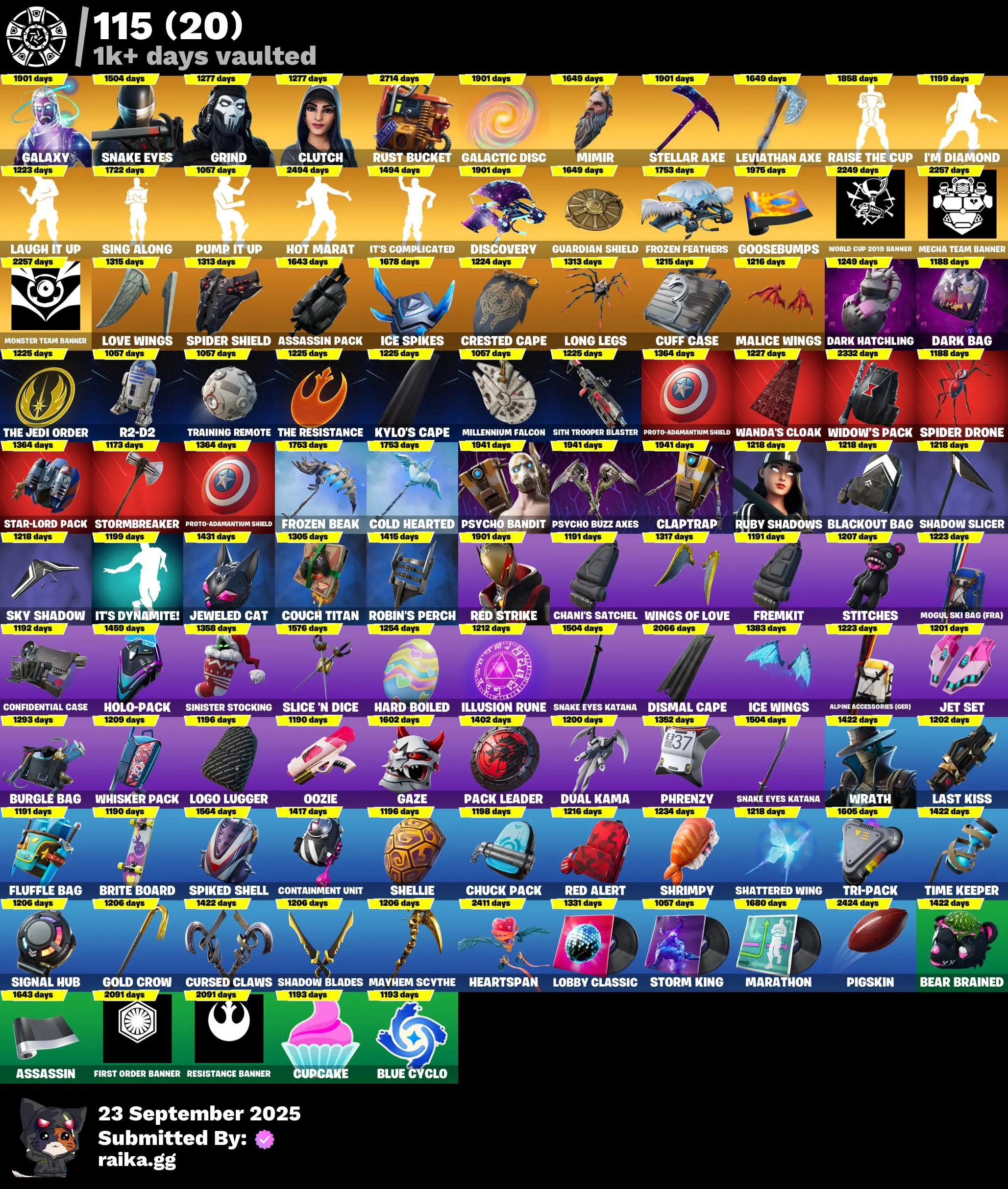 OG COMBOS 🌟 Email Changeable 🔥 PC/PSN 👑 420 Skins | OG STW | Wonder | Galaxy | IKONIK | Glow | Elite Zadie | Merry Mint Axe | Captain Levi | Leviathan Axe | Versa | Blue Team Leader | Gold Midas | Gold Kratos | Gold Brutus | Snake Eyes | 315 VB