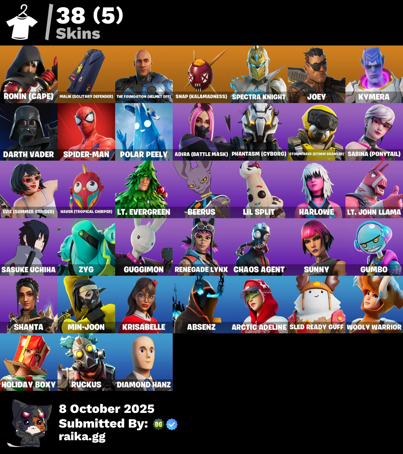 [PC] 38 skins | Sasuke Uchiha | Ronin (Cape) | Malik (Solitary Defender) | The Foundation (Helmet Off) Zka820