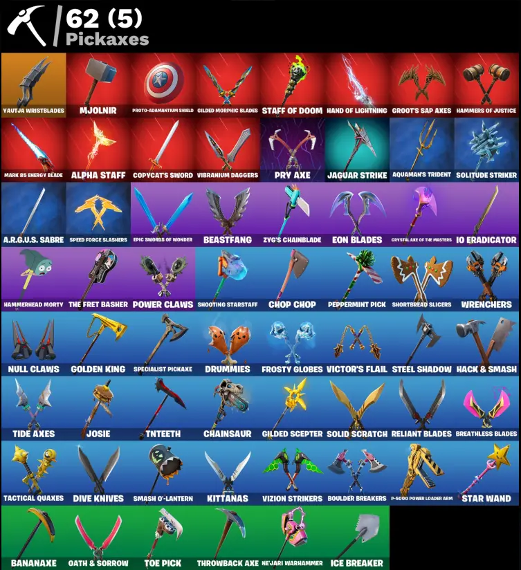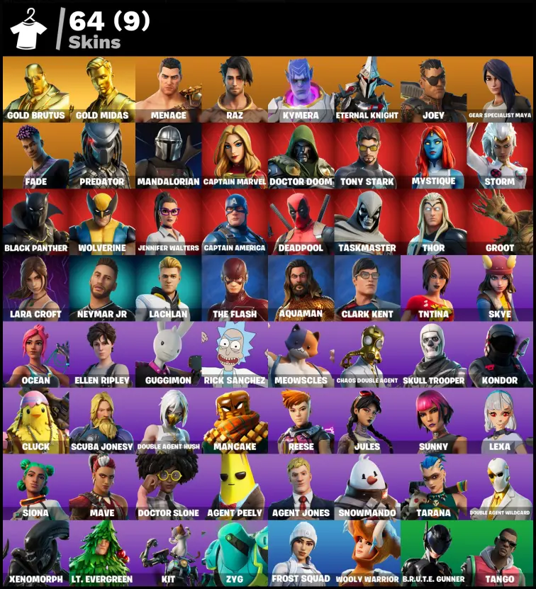 [PC/PSN/XBOX/SWITCH] 64 skins | Gold Brutus | Gold Midas | Menace | Raz | Kymera | Eternal Knight | Joey | Gear Specialist Maya | Fade | Predator | Mandalorian | 50 VB