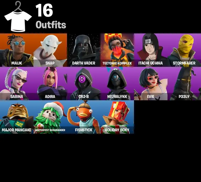 【PC/NS/XBOX/PSN】 16 SKINS 🔥 MALIK 🔥 SNAP 🔥 DARTH VADER 🔥 TECTONIC KOMPLEX 🔥 STORMFARER 🔥 ADIRA 🔥 ITACHI UCHIHA 🔥 P33LY 🔥 EVIE 🔥 NEURALYNX 🔥 100 VB