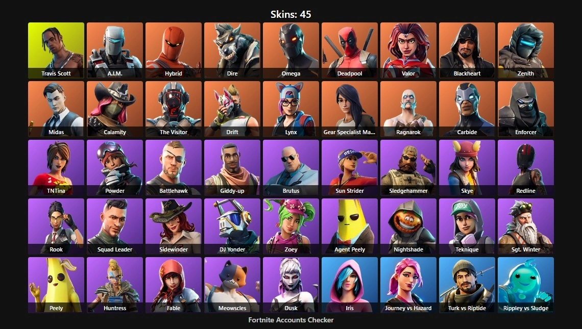 PC/PSN 45 Skins⚡ | Travis Scott | Omega | Deadpool | Midas | Peely | A.I.M. | Hybrid | Dire | Valor | Blackheart | Zenith | Calamity | The Visitor | Drift