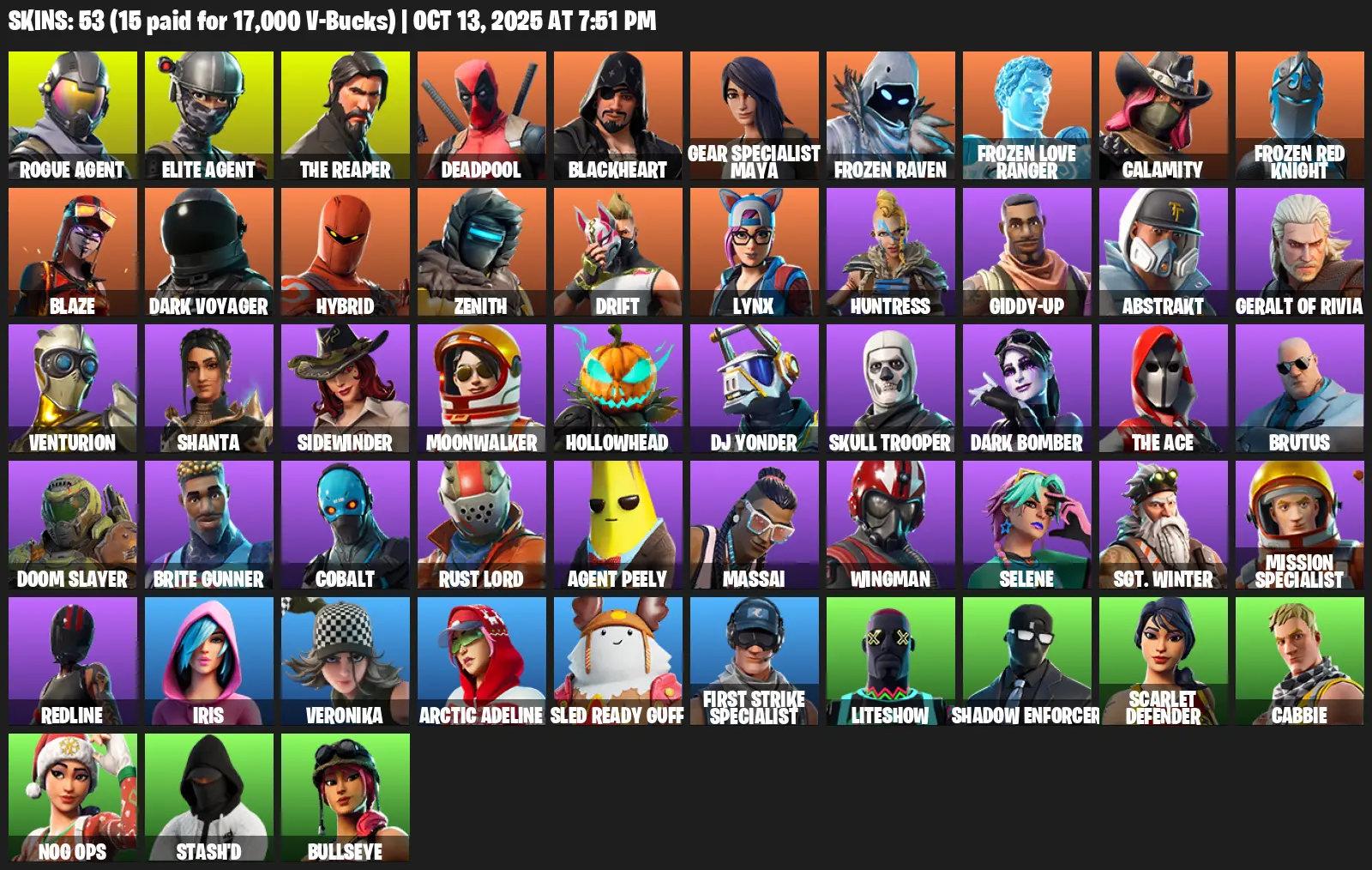 [PC/PSN] | 53 skins | Take The L | The Reaper | Elite Agent | Reaper Axe | Rogue Agent | Deadpool | Blackheart | #VZM6152 | #MBFN