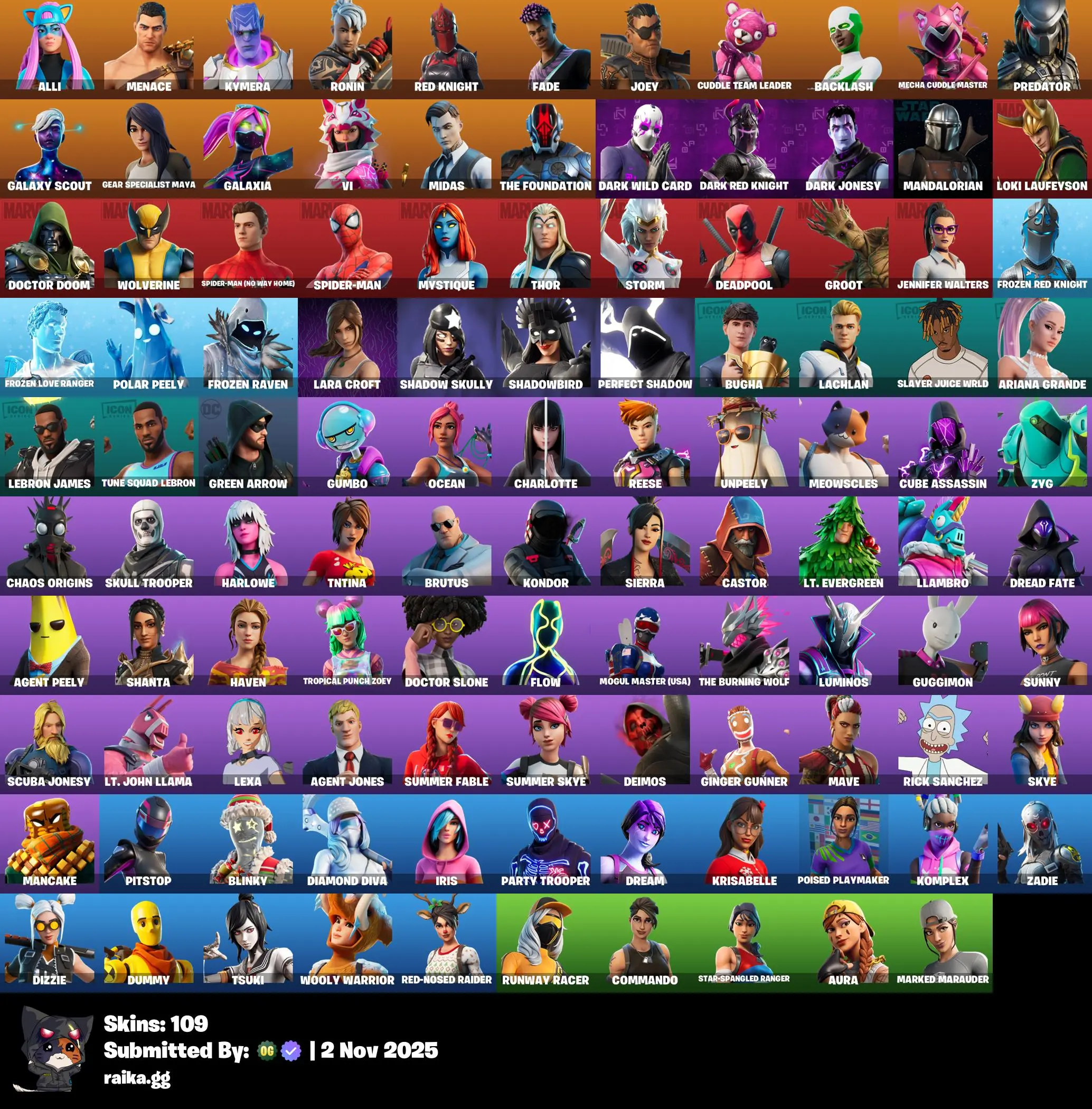 [PC/PSN/XBOX] 109 skins | Red Knight | Reaper |  Astroworld Cyclone | Alli | Menace | Kymera | Ronin | Fade | Joey | Cuddle Team Leader | Backlash | Mecha Cuddle Master | Predator | 500 VB