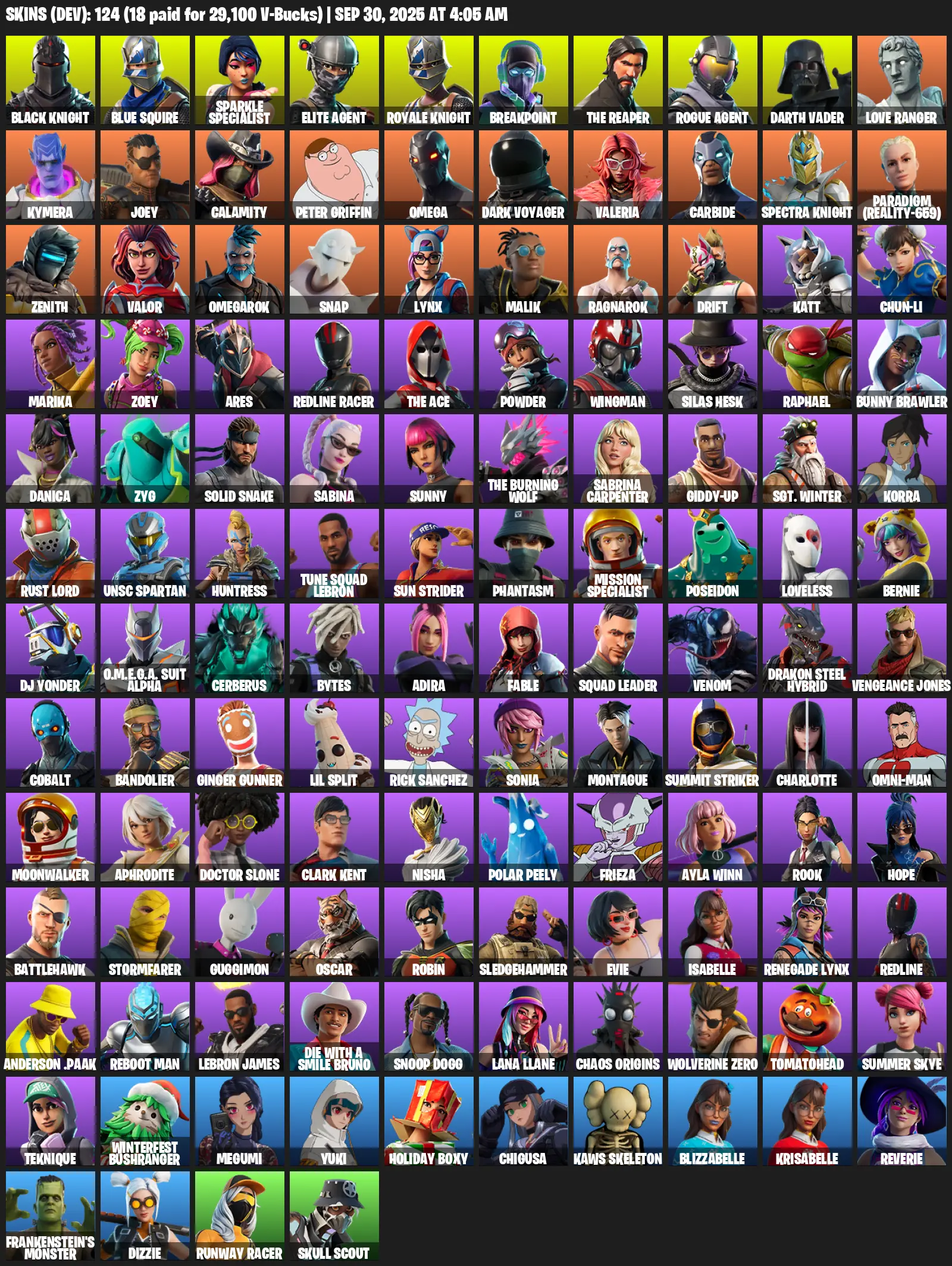[PC/PSN/XBOX] | 124 skins | Floss | Take The L | Black Knight | Sparkle Specialist | Royale Knight | The Reaper | Elite Agent | Blue Squire | S4G