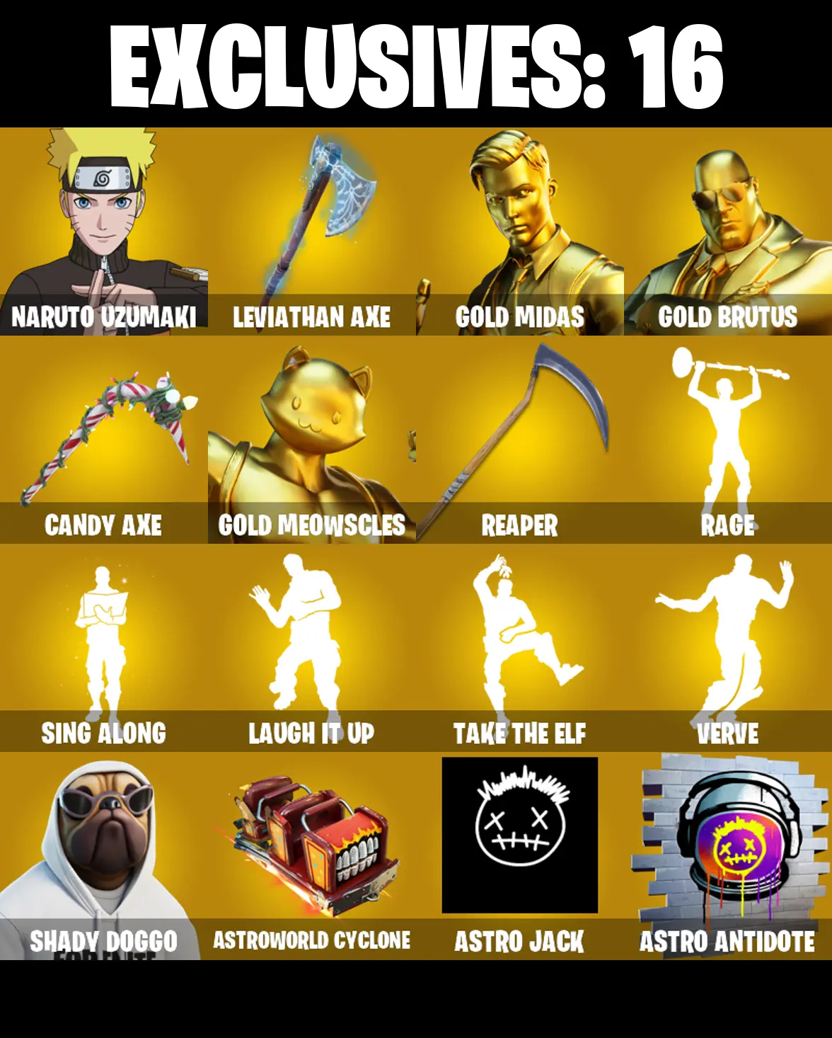 PC/PSN/XBOX ♨️162 skins ✨ Naruto Uzumaki ✨ Kakashi Hatake ✨ Leviathan Axe ✨ Deadpool ✨ Gold Midas ✨ Gold Brutus ✨ Candy Axe ✨ Gold Meowscles ✨ #B696