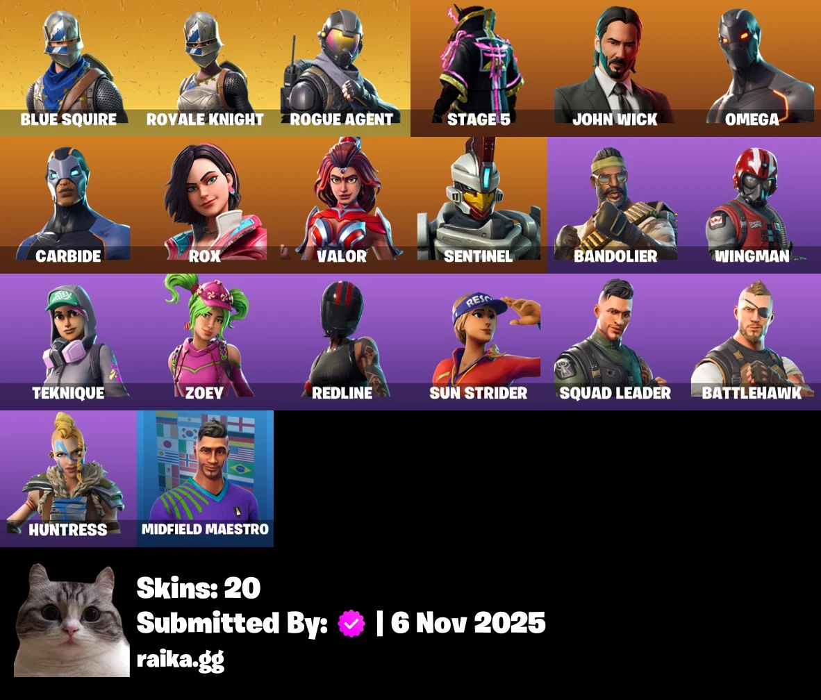 [PC/PSN/XBOX] 20 skins | Blue Squire | Royale Knight | Rogue Agent | STAGE 5 | John Wick | Omega | Carbide | Rox | Valor | Sentinel | Bandolier | Wing