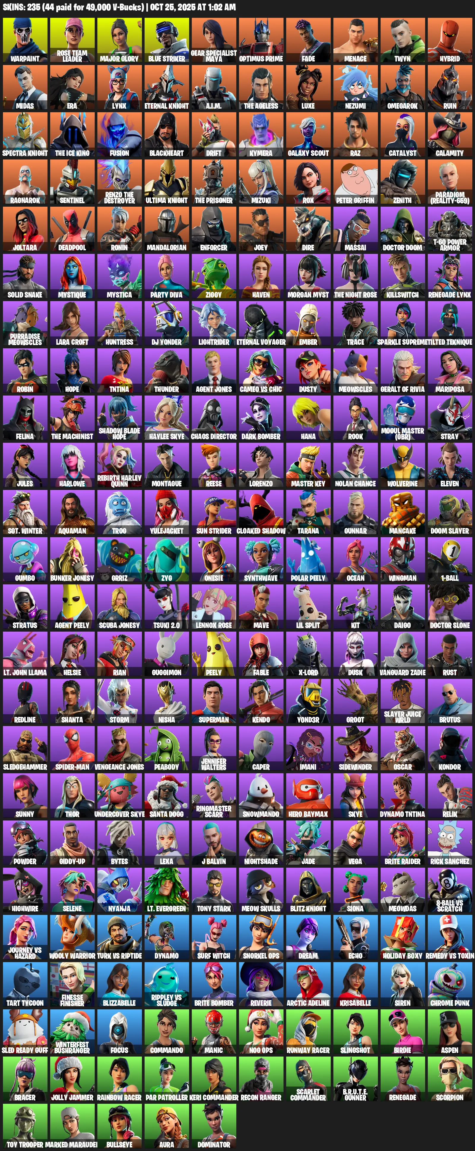 [PC/PSN/XBOX] | 235 skins | 1200 V-bucks | Leviathan Axe | OG STW | Lara Croft | Warpaint | Rose Team Leader | Major Glory | #PKF6123 | #MBFN
