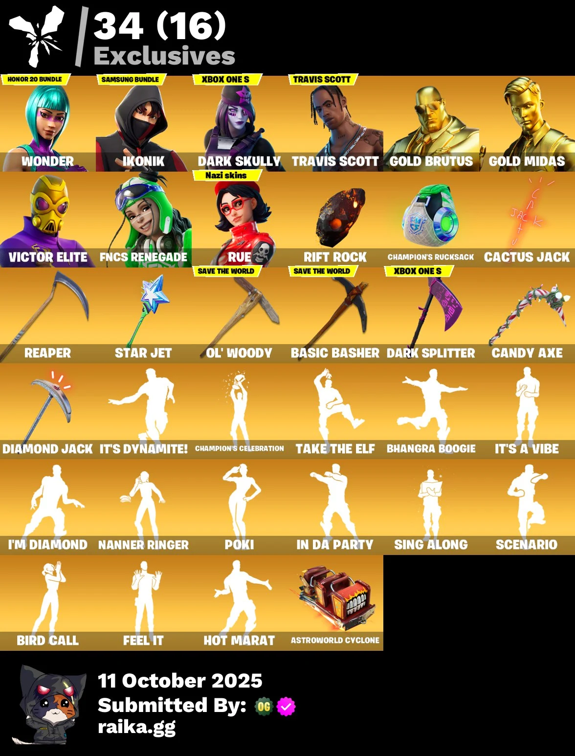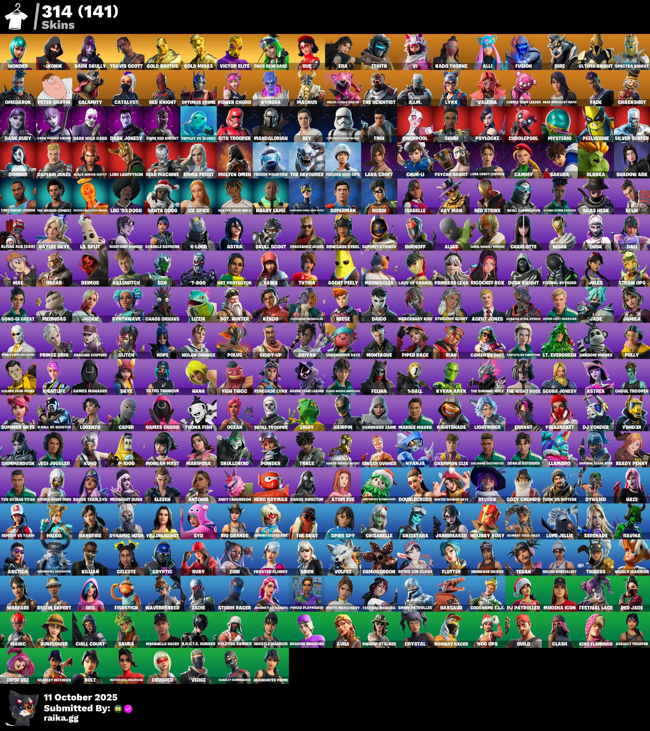 [PC/PSN/XBOX] 314 skins | Renegade Raider | Wonder | IKONIK | Dark Skully | Travis Scott | Gold Brutus | Gold Midas | Victor Elite | FNCS Renegade | Rue | 150 VB