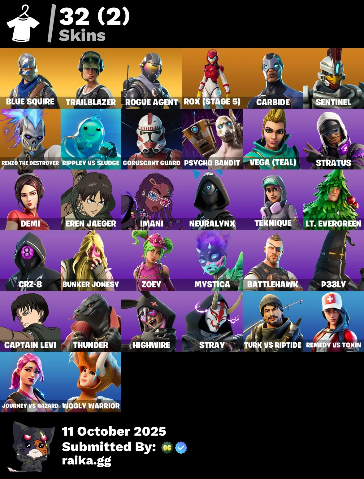 🔥 [PC/PSN/XBOX] 32 skins | Blue Squire | Psycho Bandit | Eren Jaeger | Captain Levi | Trailblazer | Rogue Agent lai550