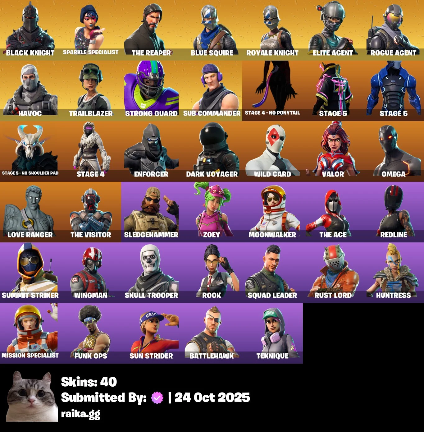 [PC/PSN/XBOX] 40 skins | Black Knight | Sparkle Specialist | The Reaper | Blue Squire | Royale Knight | Elite Agent | Rogue Agent | Havoc | Trailblaze