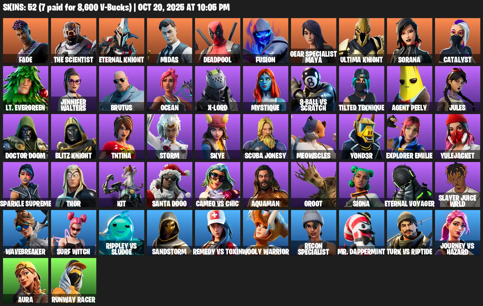 🍨 [PC/PSN/XBOX] 🌟 52 skins | The Scientist , Eternal Knight , Midas , Fusion , Ultima Knight , Catalyst , Doctor Doom , Storm , Aquaman | 💙 800 VBUCKS | ✉️ Changeable Email Now