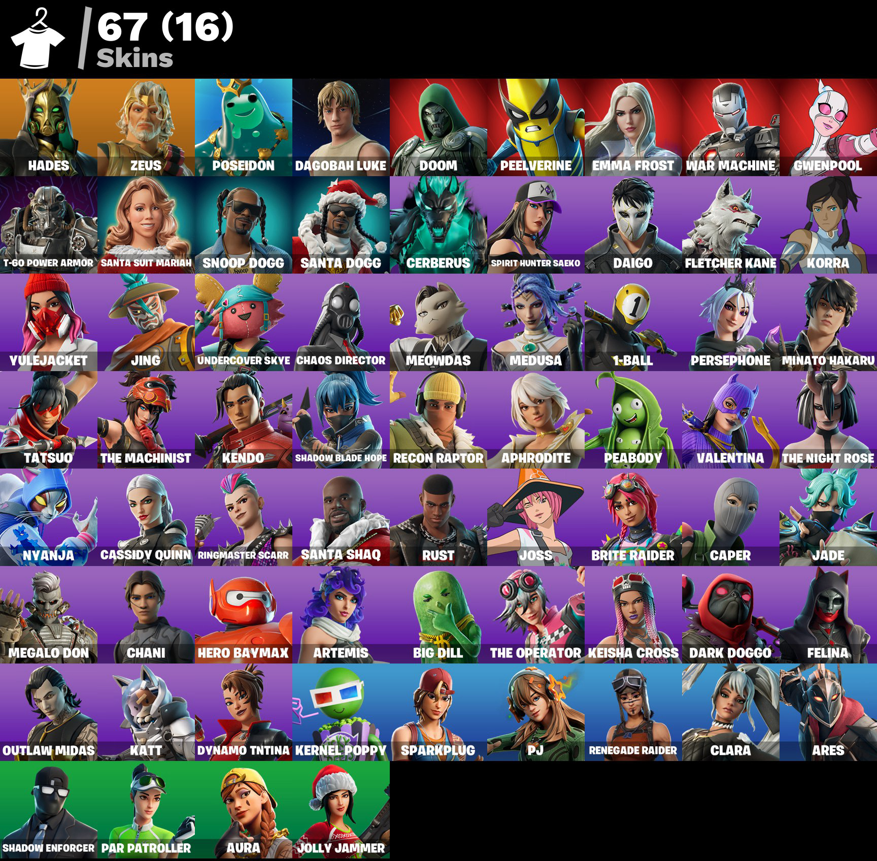 PC,PSN,XBOX 67 SKINS FA ⸱ CHANI ⸱ SANTA SUIT MARIAH ⸱ DAGOBAH LUKE ⸱ CAPER ⸱ RENEGADE RAIDER ⸱ KERNEL POPPY ⸱ DOOM RK065