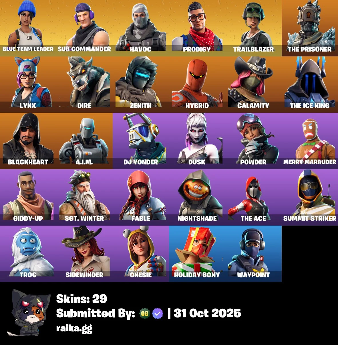 [PC/PSN/XBOX] 900 VBUCKS | 29 skins | Blue Team Leader | Sub Commander | Havoc | Prodigy | Trailblazer | The Prisoner | Lynx | Dire | Zenith | Hybrid | Calamity
