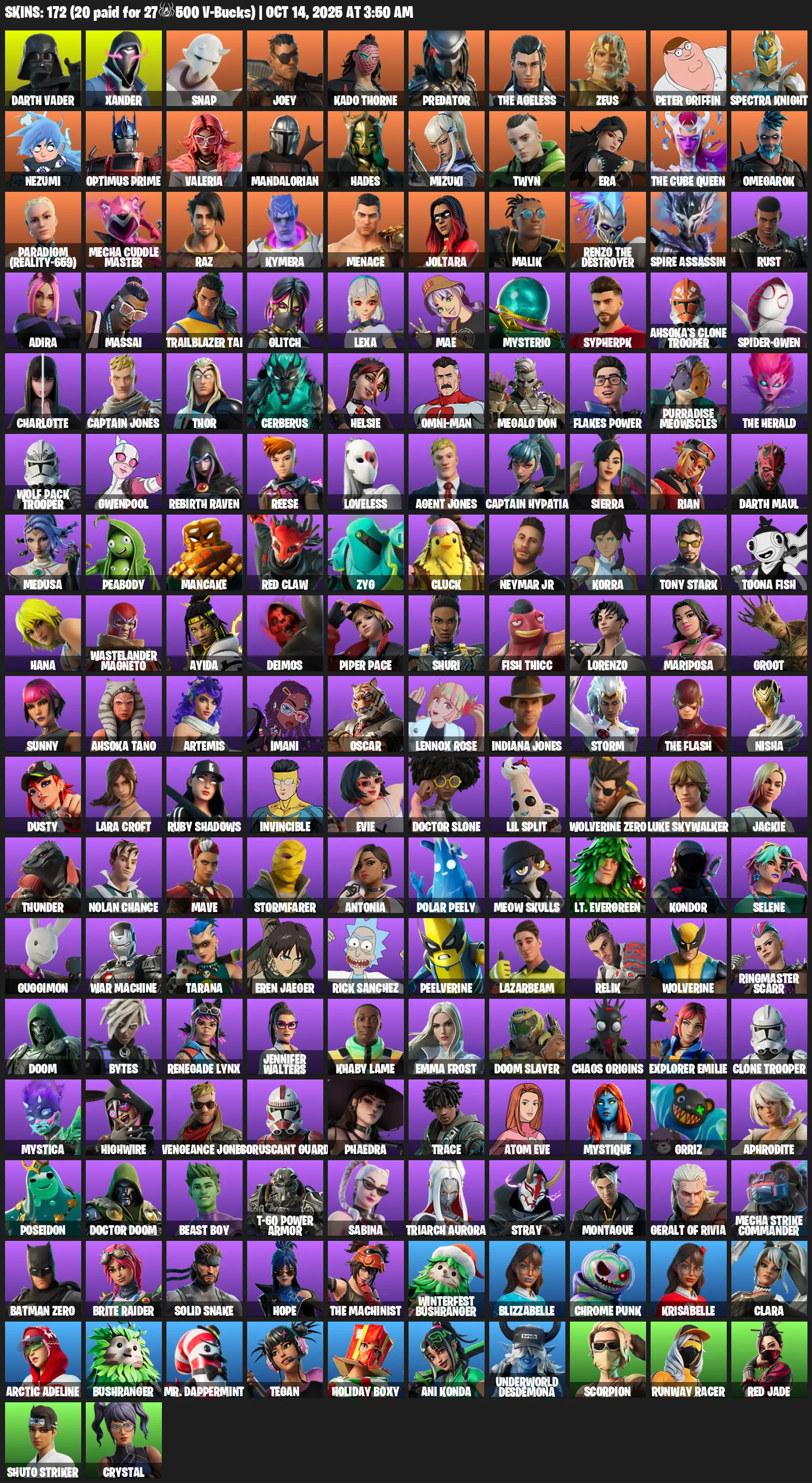 [PC/PSN/XBOX] | 172 skins | Lara Croft | Darth Vader | Xander | Snap | Joey | Kado Thorne | Predator | The Ageless | Zeus | #HMF3501 | #MBFN