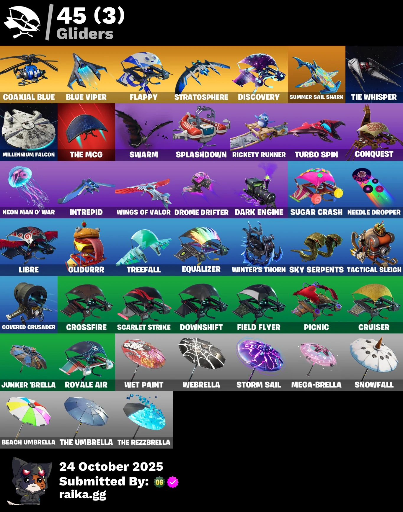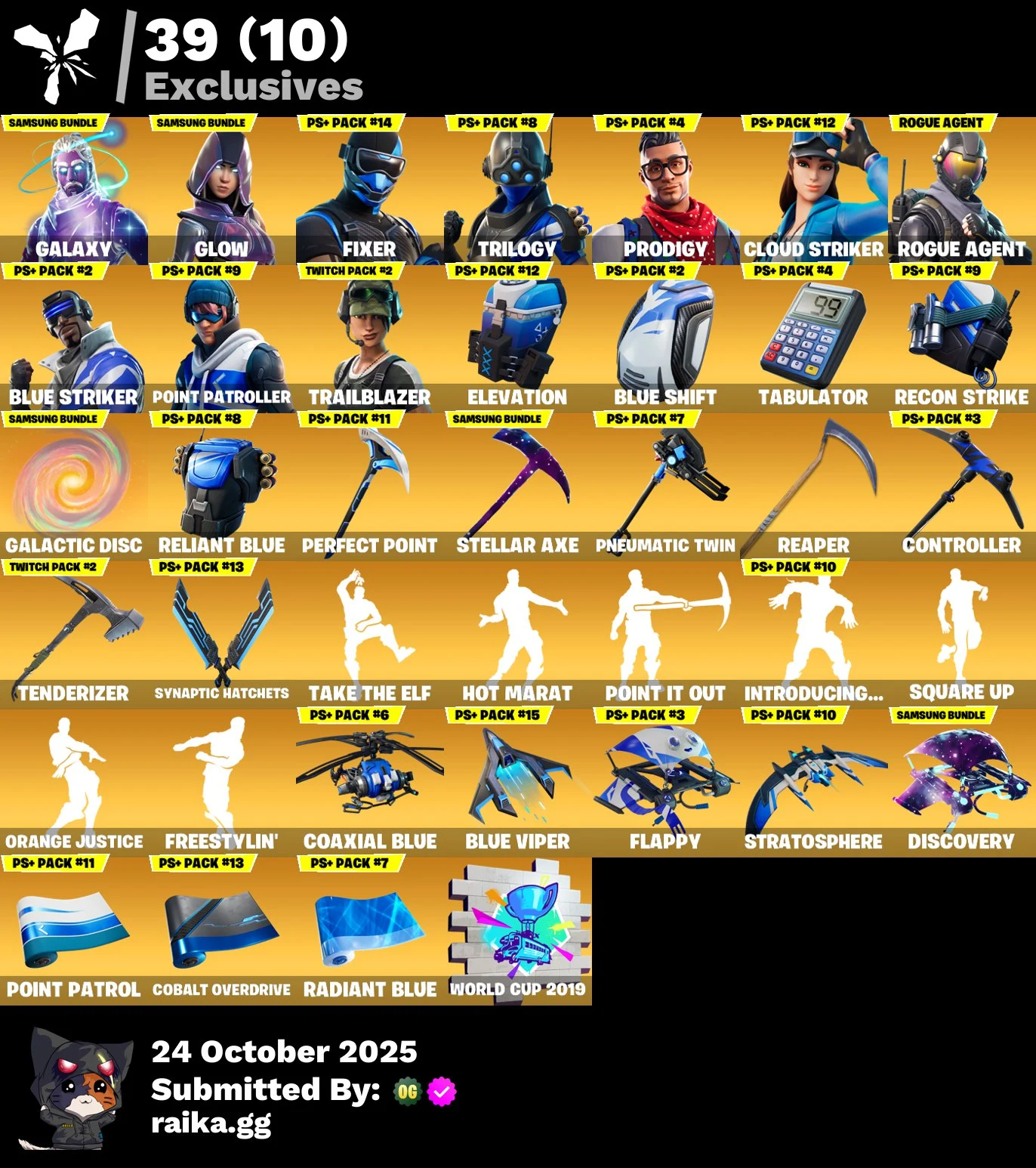 PC/PSN/Xbox/Nintendo 53 skins | Galaxy | Glow | Fixer | Trilogy | Prodigy | Cloud Striker | Rogue Agent | Blue Striker | Point Patroller | Trailblazer | Sentinel | 250 VB