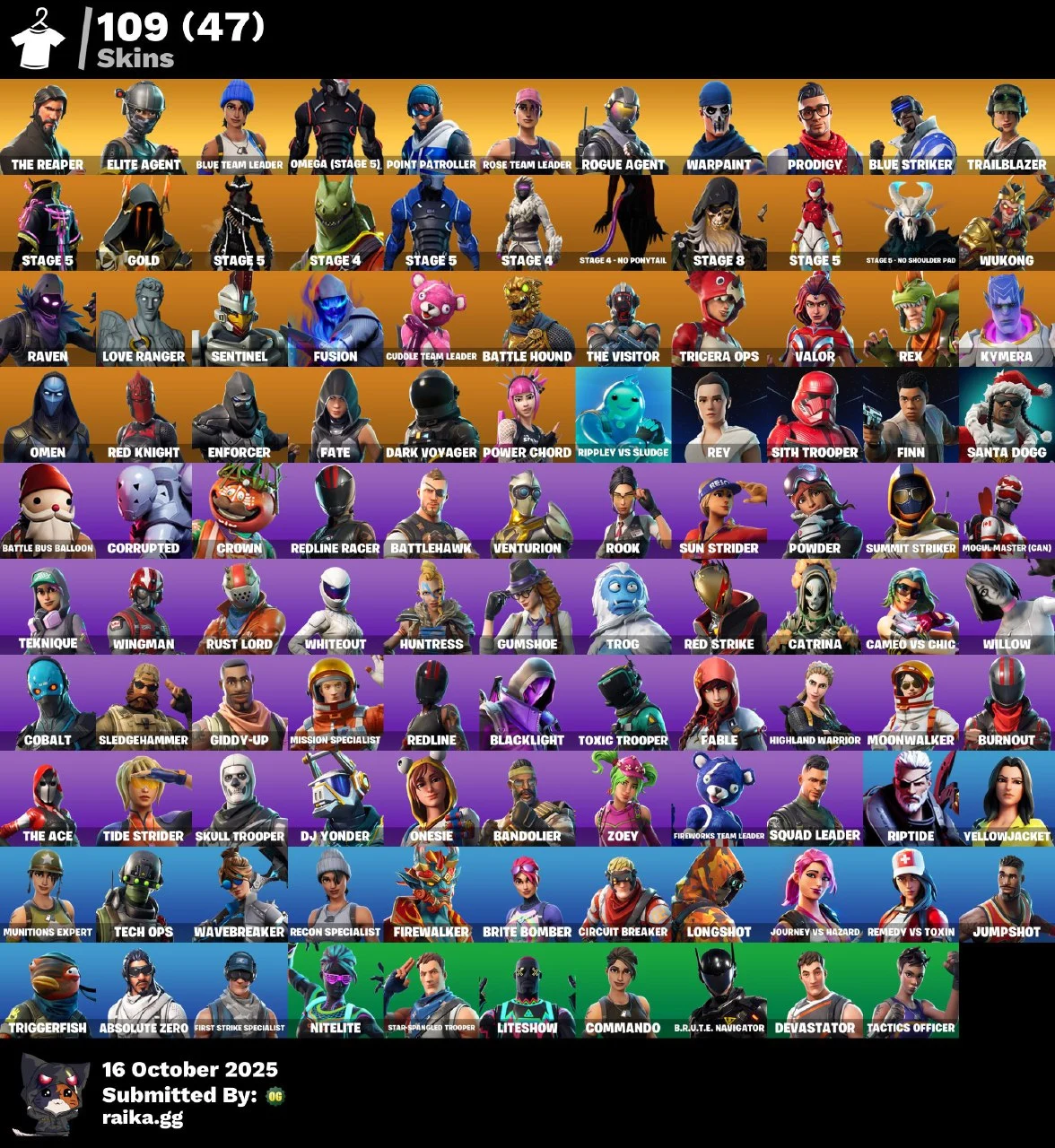 [PC/XBOX] 109 skins | OG STW | The Reaper | Take The L | Elite Agent | Raven | Sith Trooper | Rust Bucket | Rey lai403