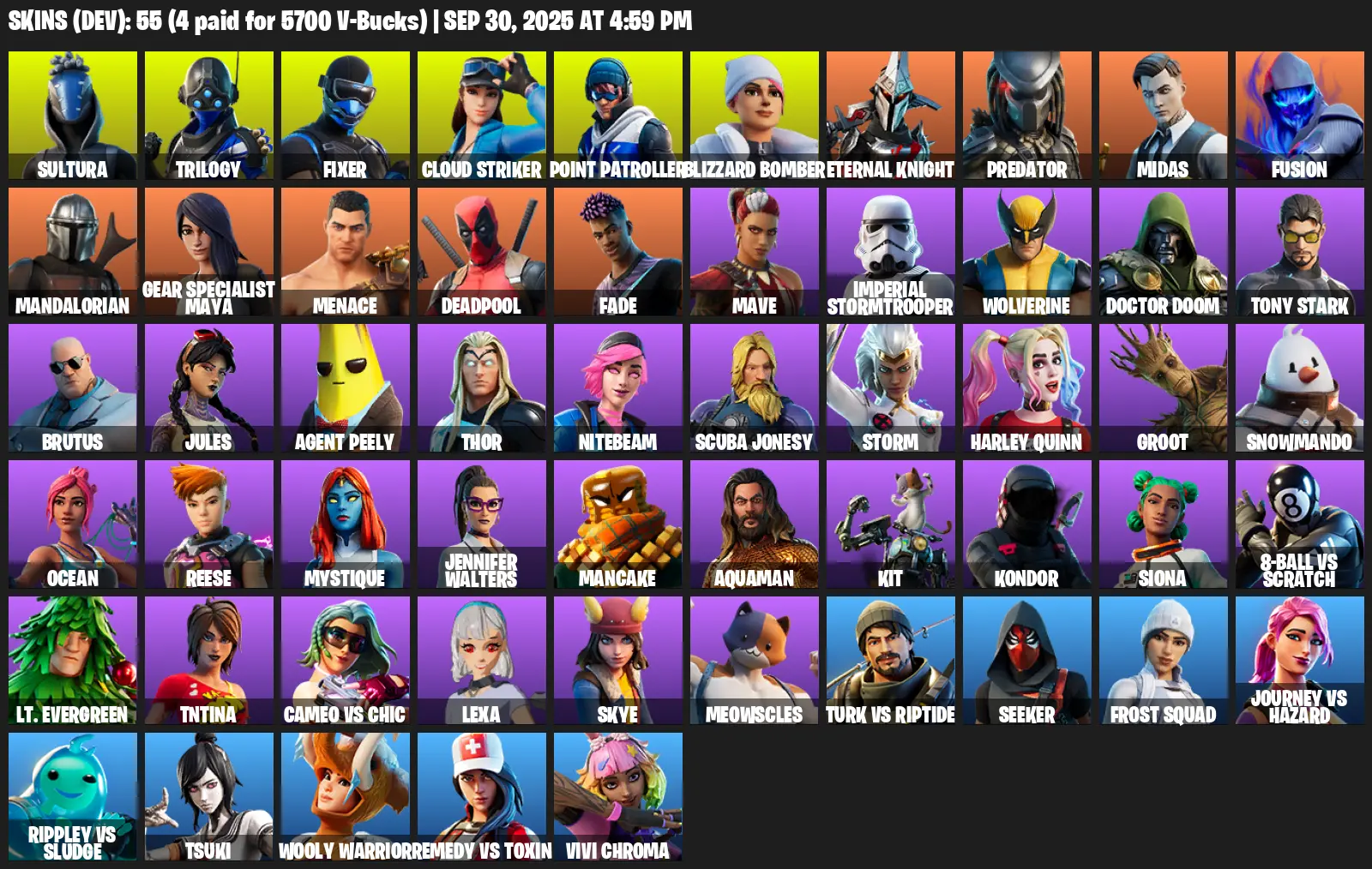 PC/XBOX 55 Skins⚡ | Midas | Deadpool | Sultura | Trilogy | Fixer | Cloud Striker | Point Patroller | Blizzard Bomber | Eternal Knight | Predator | Fusion
