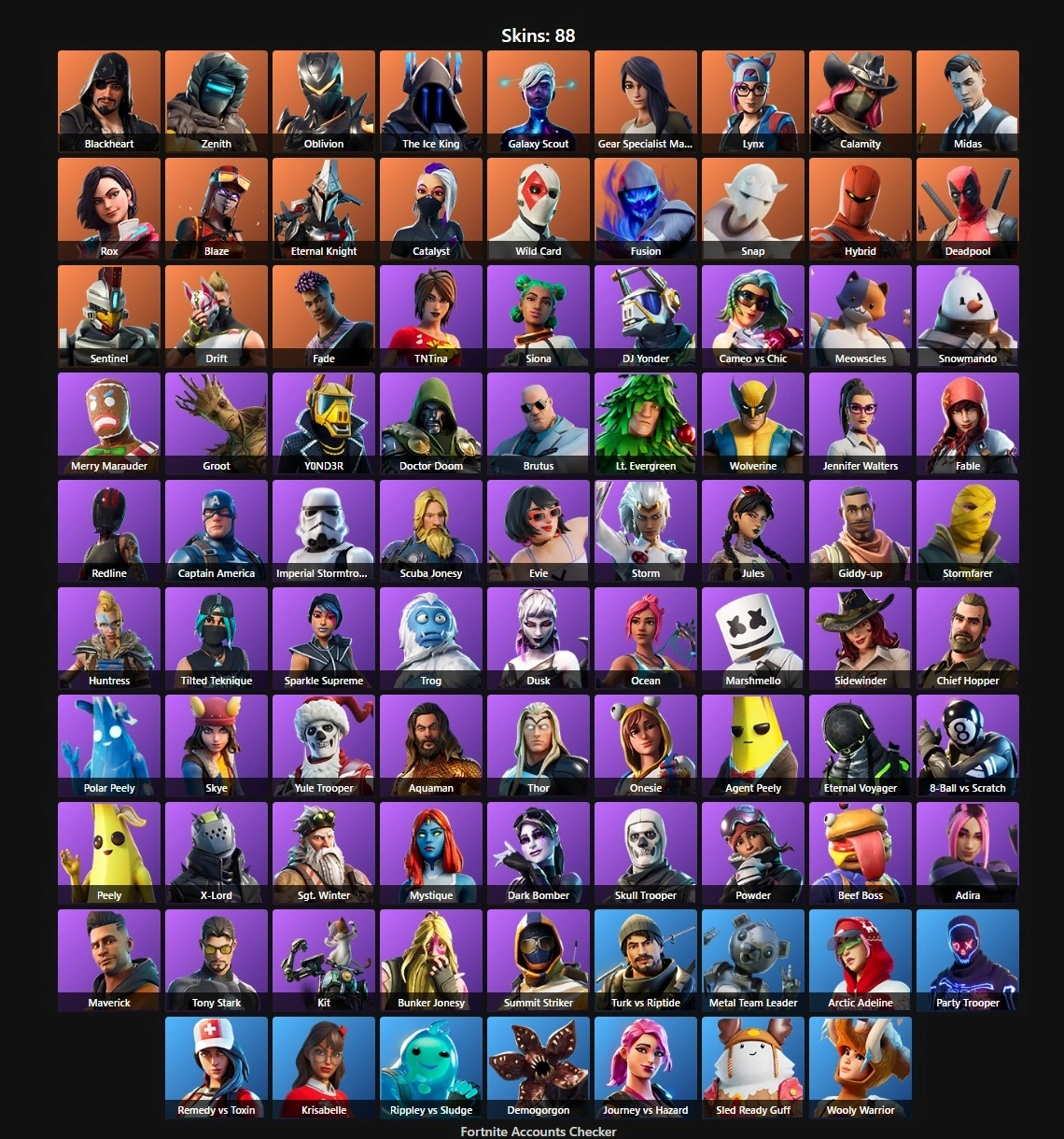PC/XBOX 88 Skins⭐️ | Midas | Deadpool | Peely | Skull Trooper | Blackheart | Zenith | Oblivion | The Ice King | Galaxy Scout | Gear Specialist Maya | Lynx