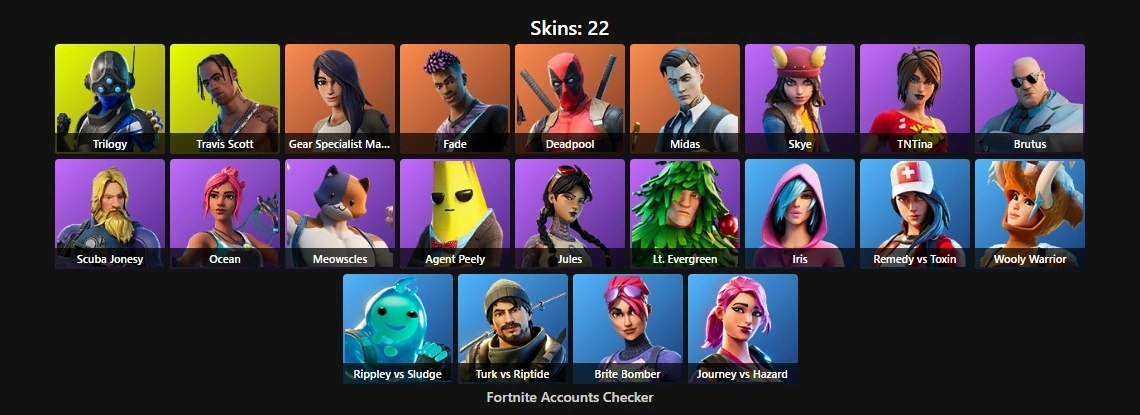 PC/XBOX/PSN 22 Skins⚡ | Travis Scott | Deadpool | Midas | Trilogy | Gear Specialist Maya | Fade | Skye | TNTina | Brutus | Scuba Jonesy | Ocean | Meowscles