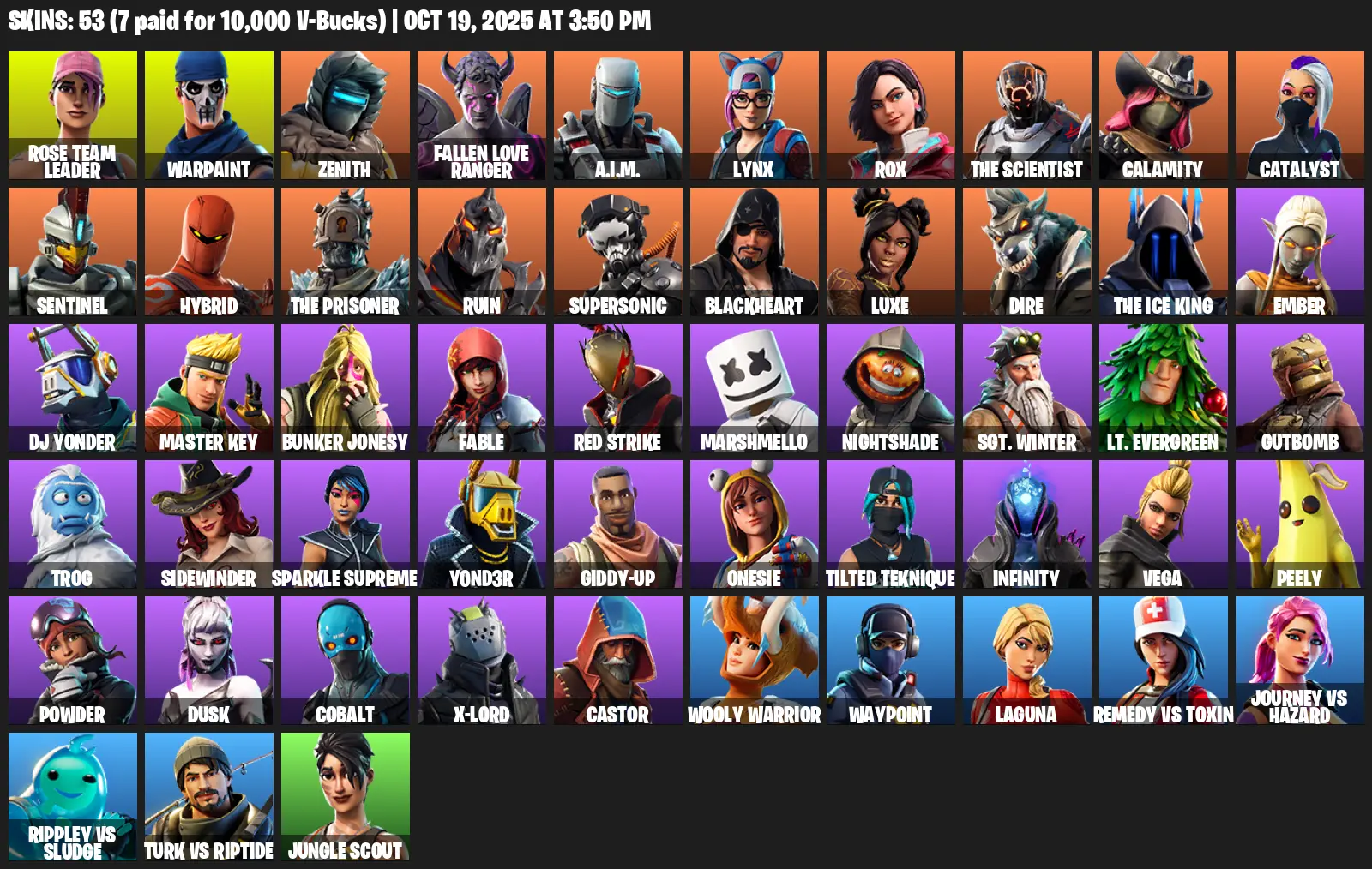 [PC/XBOX/PSN] 53 Skins | Rose Team Leader | Warpaint | Zenith | Fallen Love Ranger | A.I.M. | Lynx | Rox | The Scientist | Calamity | Catalyst | Sentinel | Hybrid | The Prisoner | Ruin | Supersonic | Blackheart | Luxe | Dire | The Ice King | Ember