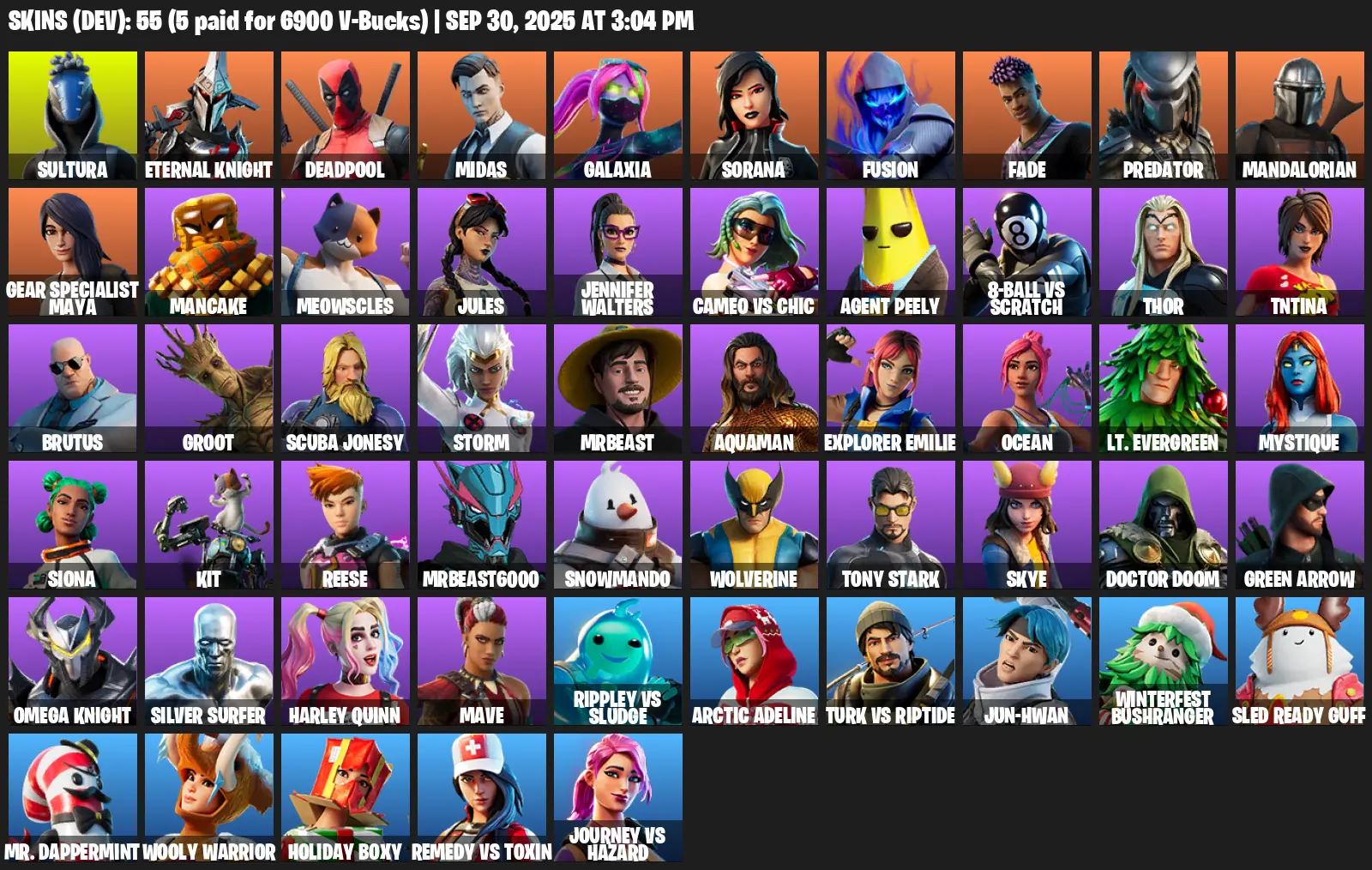 PC/XBOX/PSN 55 Skins⚡ | Deadpool | Midas | Sultura | Eternal Knight | Galaxia | Sorana | Fusion | Fade | Predator | Mandalorian | Gear Specialist Maya