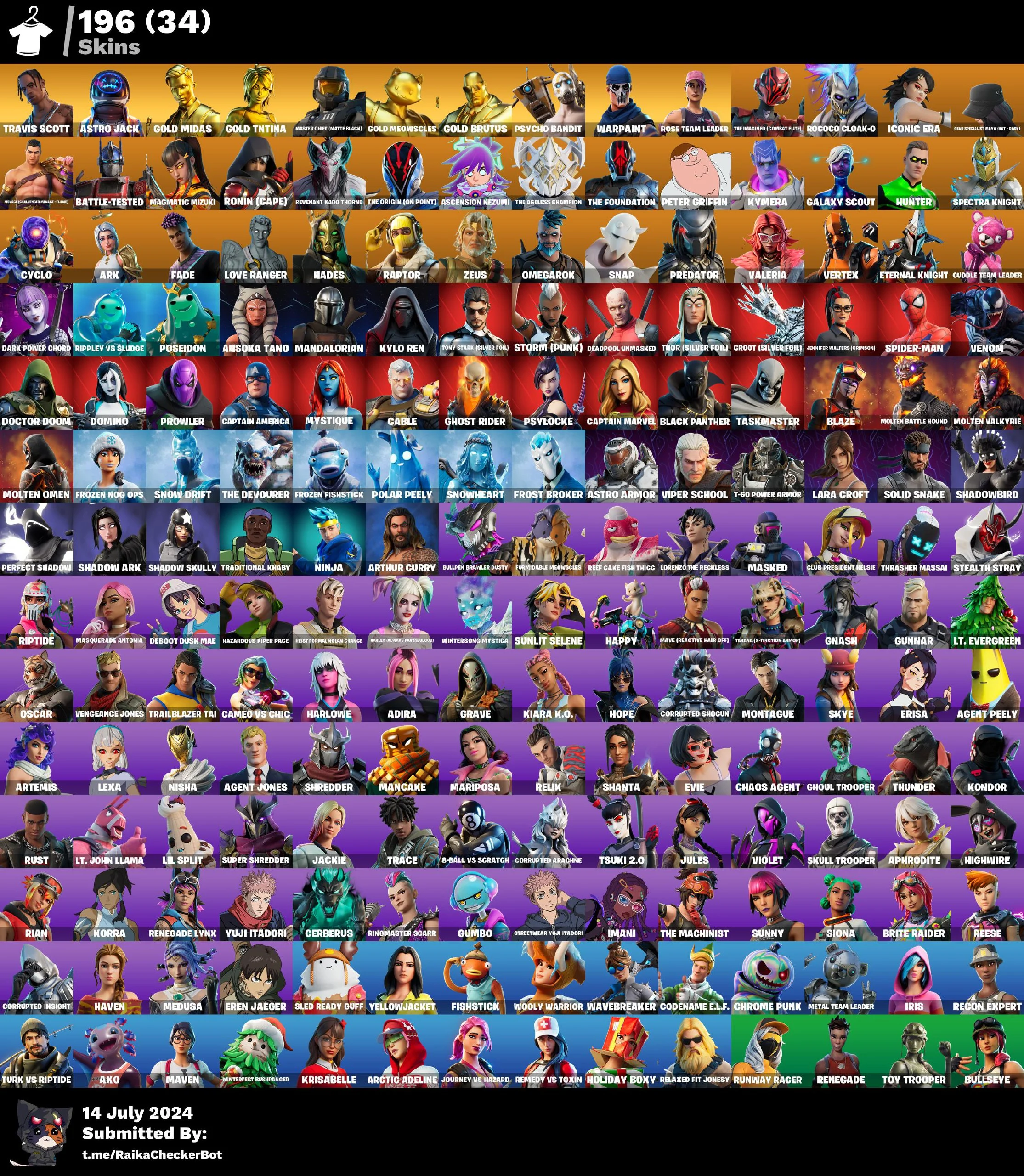 🎁✨ RARE ACCOUNT ✨🎁 196 SKINS 🌟 OG TRAVIS SCOTT 🌟 ASTRO JACK 🌟 GOLD MIDAS 🌟 GOLD TNTINA 🌟 MASTER CHIEF (MATTE BLACK) 🌟 GOLD MEOWSCLES 🌟 980 VB 🌟 PC/PSN/XBOX