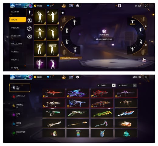 💥ULTIMATE LOW COST💥♨️ POWERFUL FF ACCOUNT 💢 SEXY 5 EVO GUN COLLECTION 💥 52 LEVEL & 939 LIKES 🔥 RARE 49 VAULT COLLECTION WITH OLD EPS 💗 M4A1 ZOMBIE ATTACK GUN SKIN & FIST BUMP FIST ✨ 5 GLOO WALL OP SKINS & SOME CAR & BIKES SKINS 🍀 FAST DELIVERY 🚚