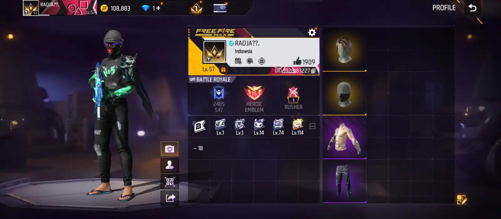 V19|LVL57|171COSTUME(11MYTHIC)|192WEAPON(33MYTHIC)|DREAMYCLUB-MP40|UNICORNSRAGEVIOLET-AK47|DEFIERSANTHEM-M1014