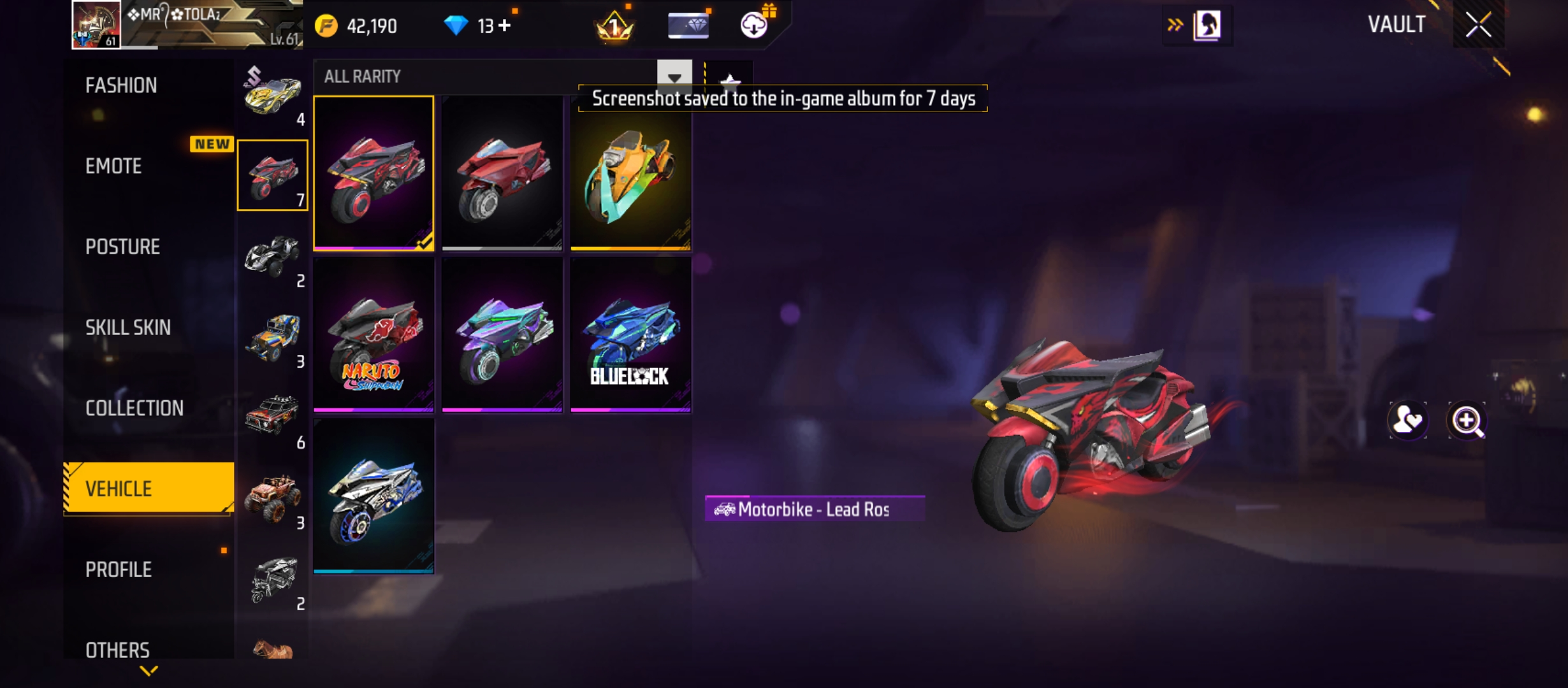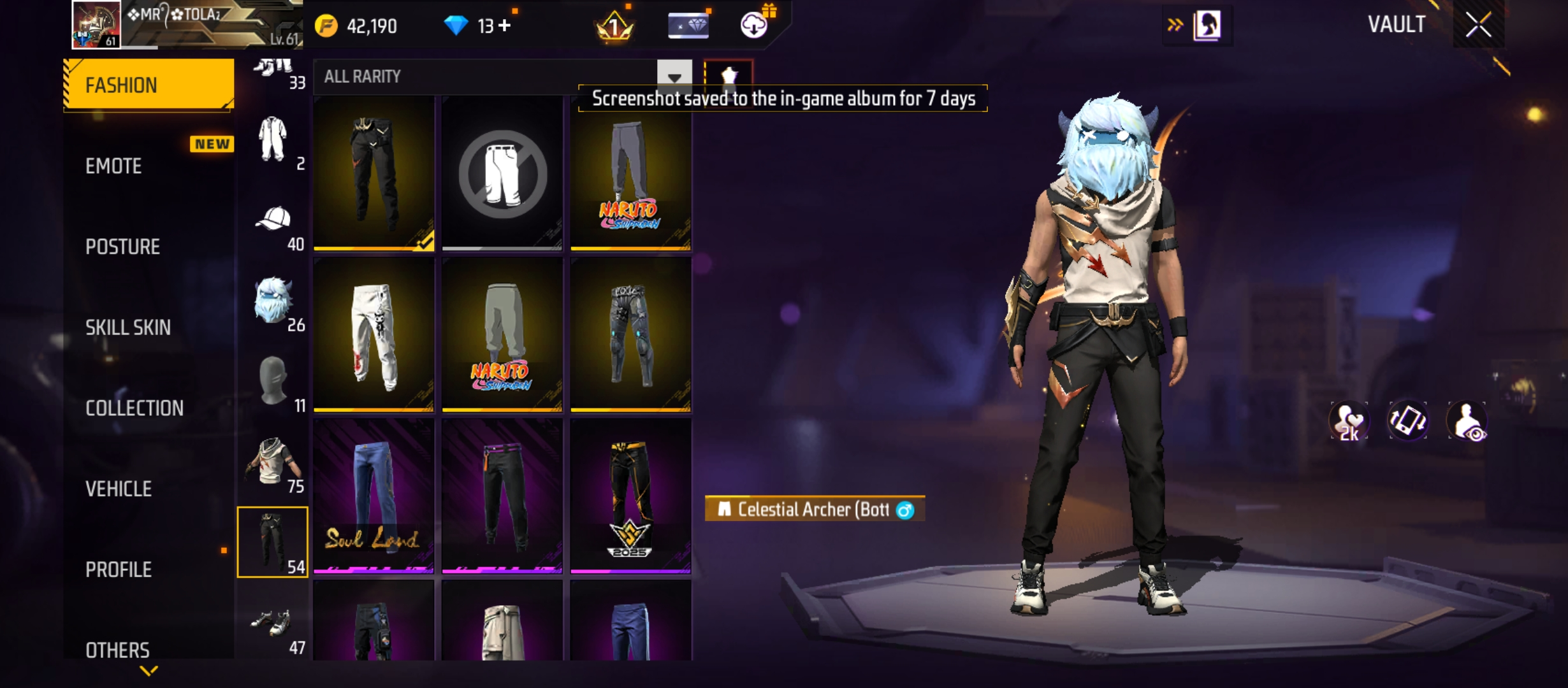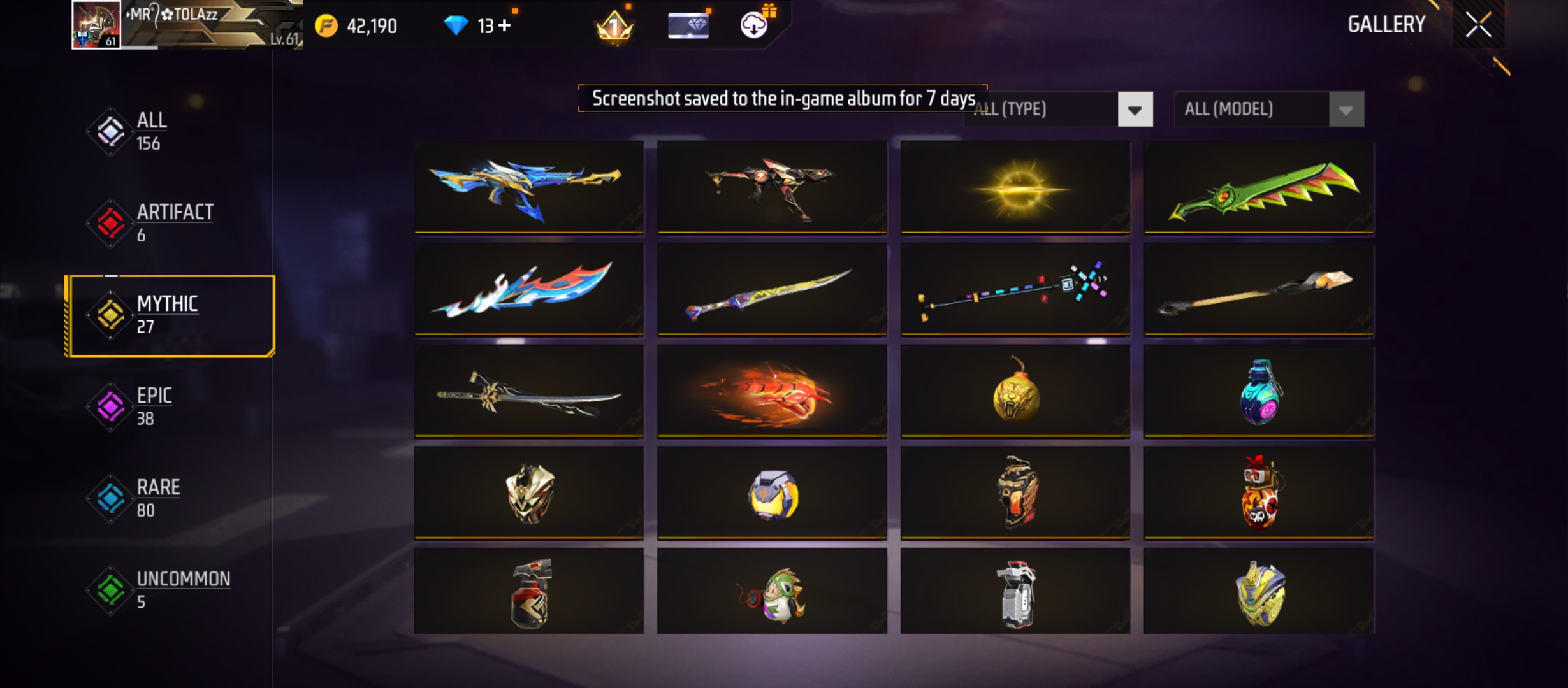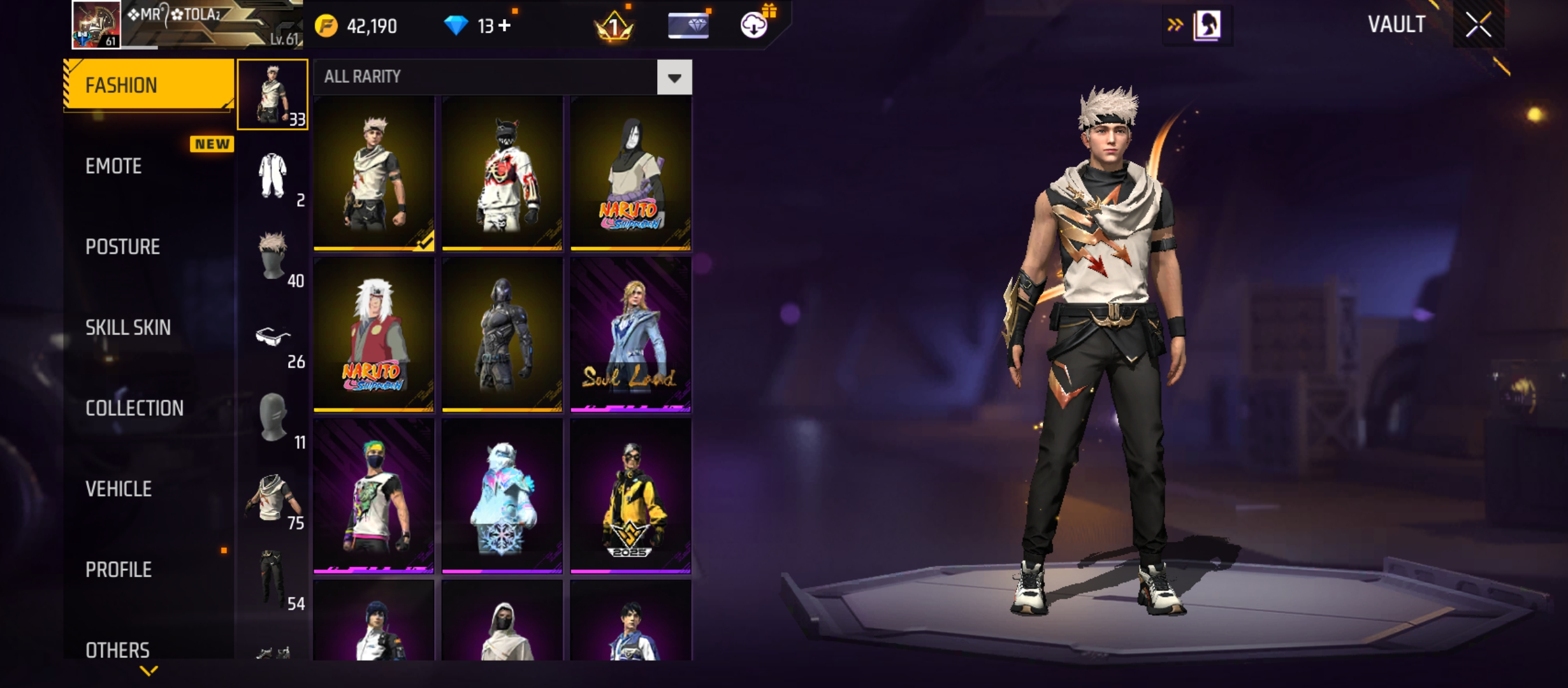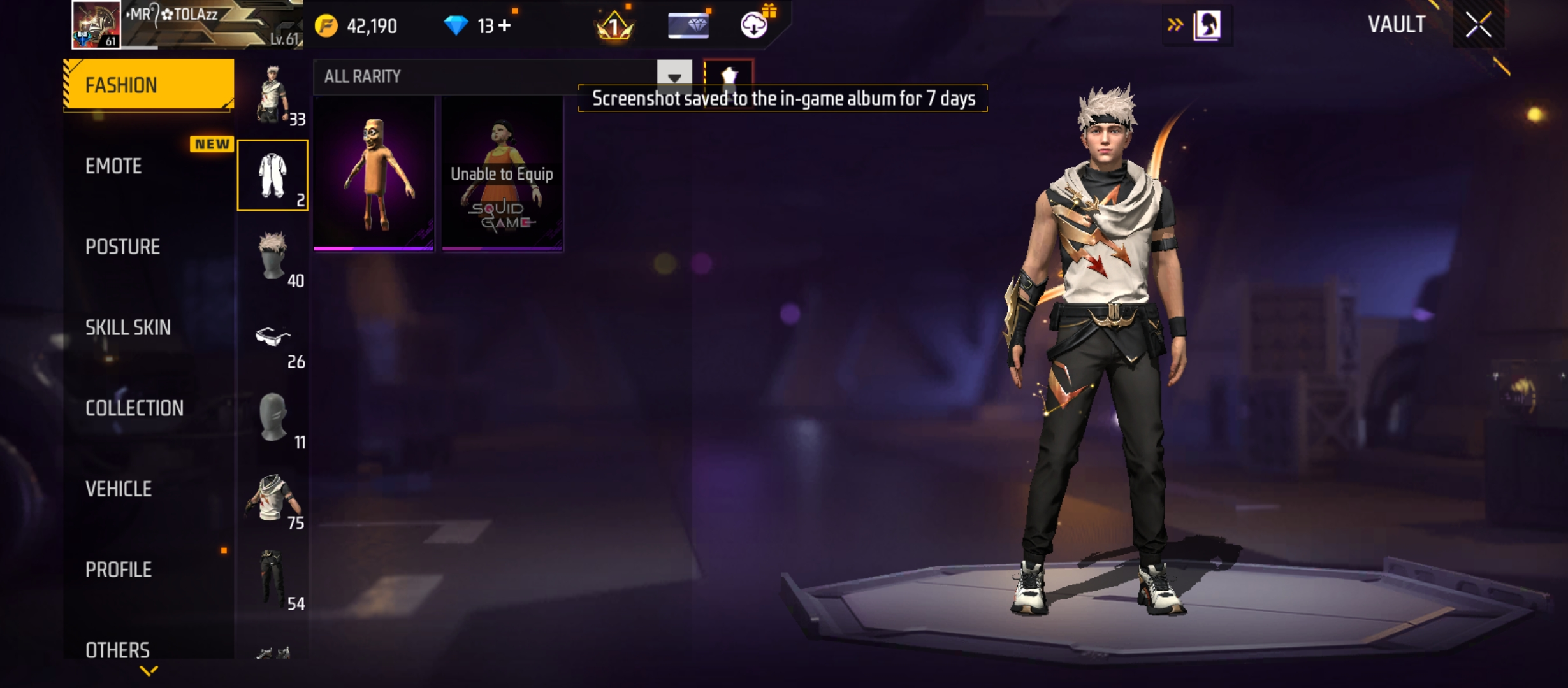 X286|Lvl 61|STORM CONQUEROR|60 CHARA|75 COSTUME|156 WEAPON(6 EVO+27 MYTHIC)|M1014 Scorpio Lv 4|M14A1 Infernal Draco Lv 2